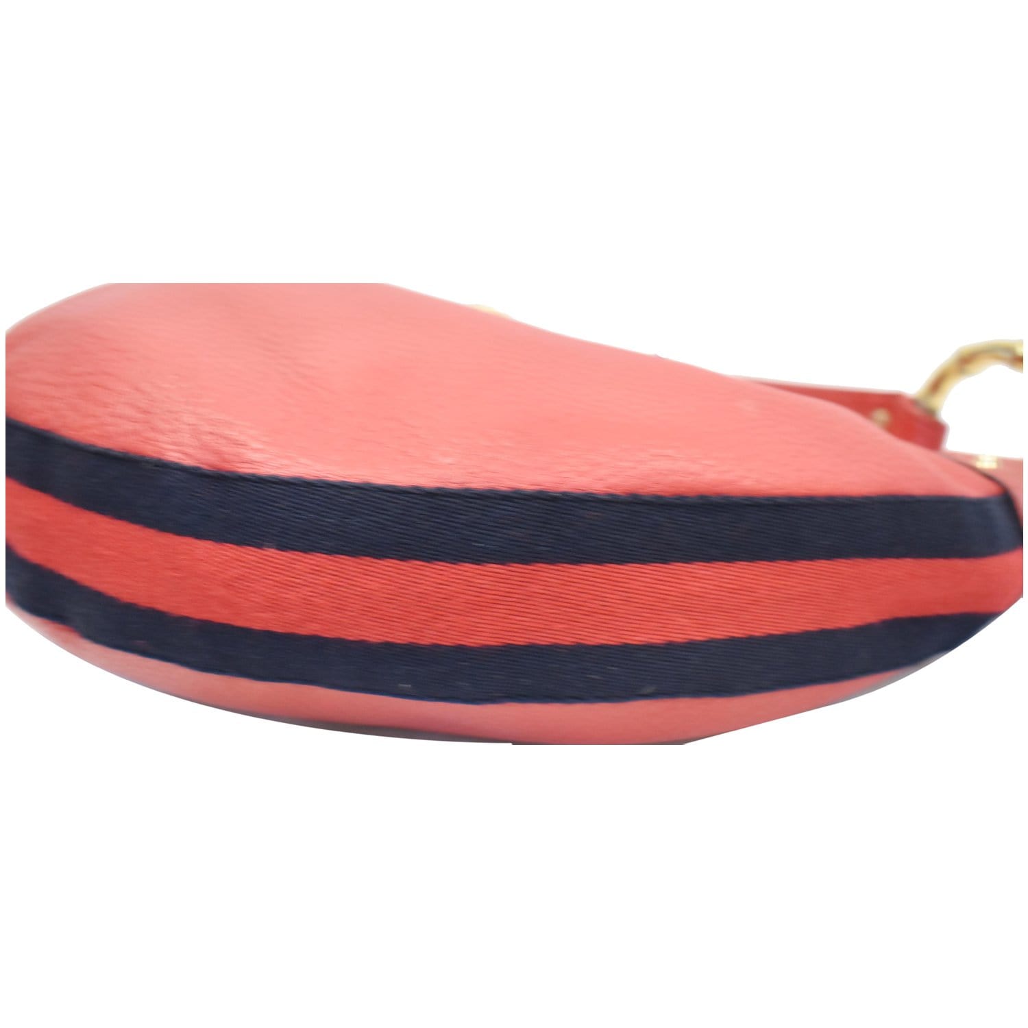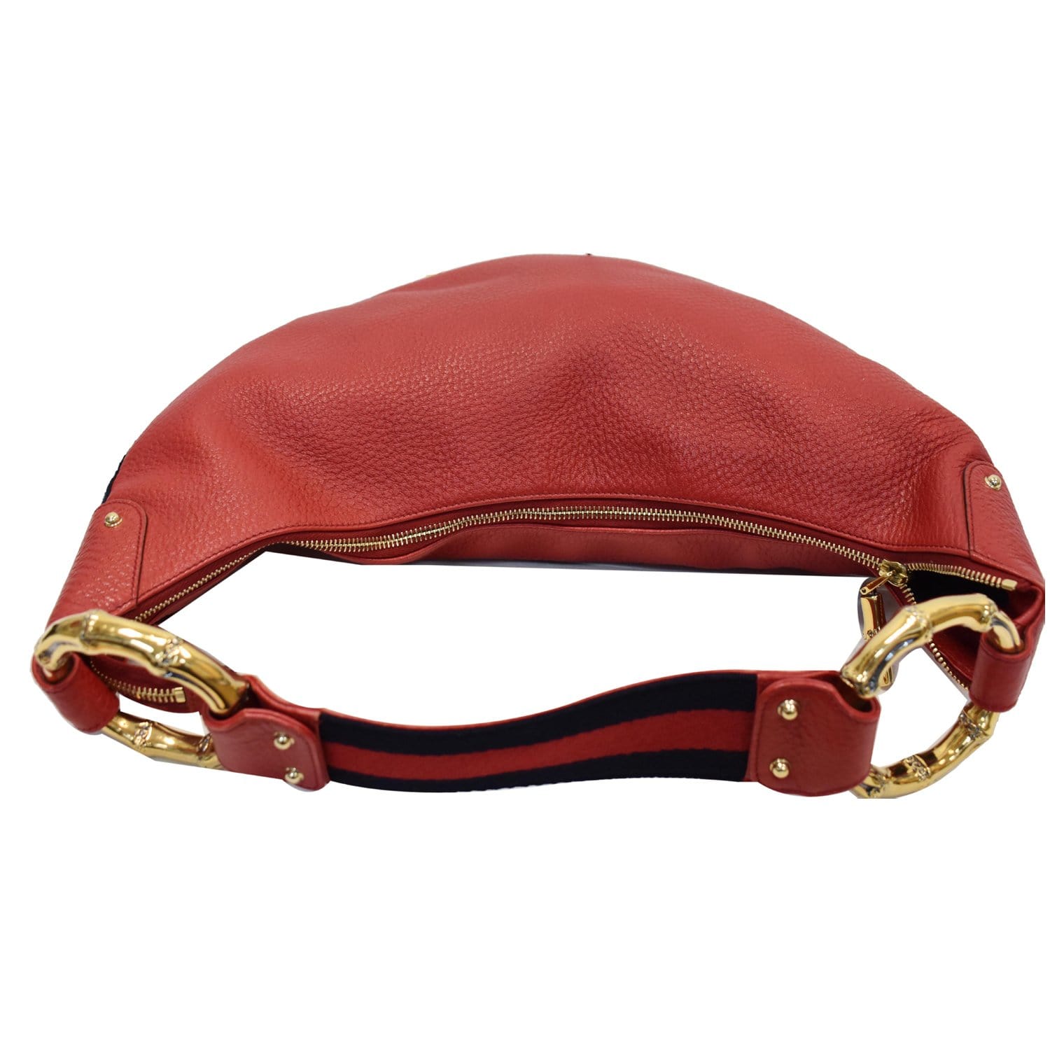 GUCCI Pebbled Leather Bamboo Ring Hobo Bag Red 131036