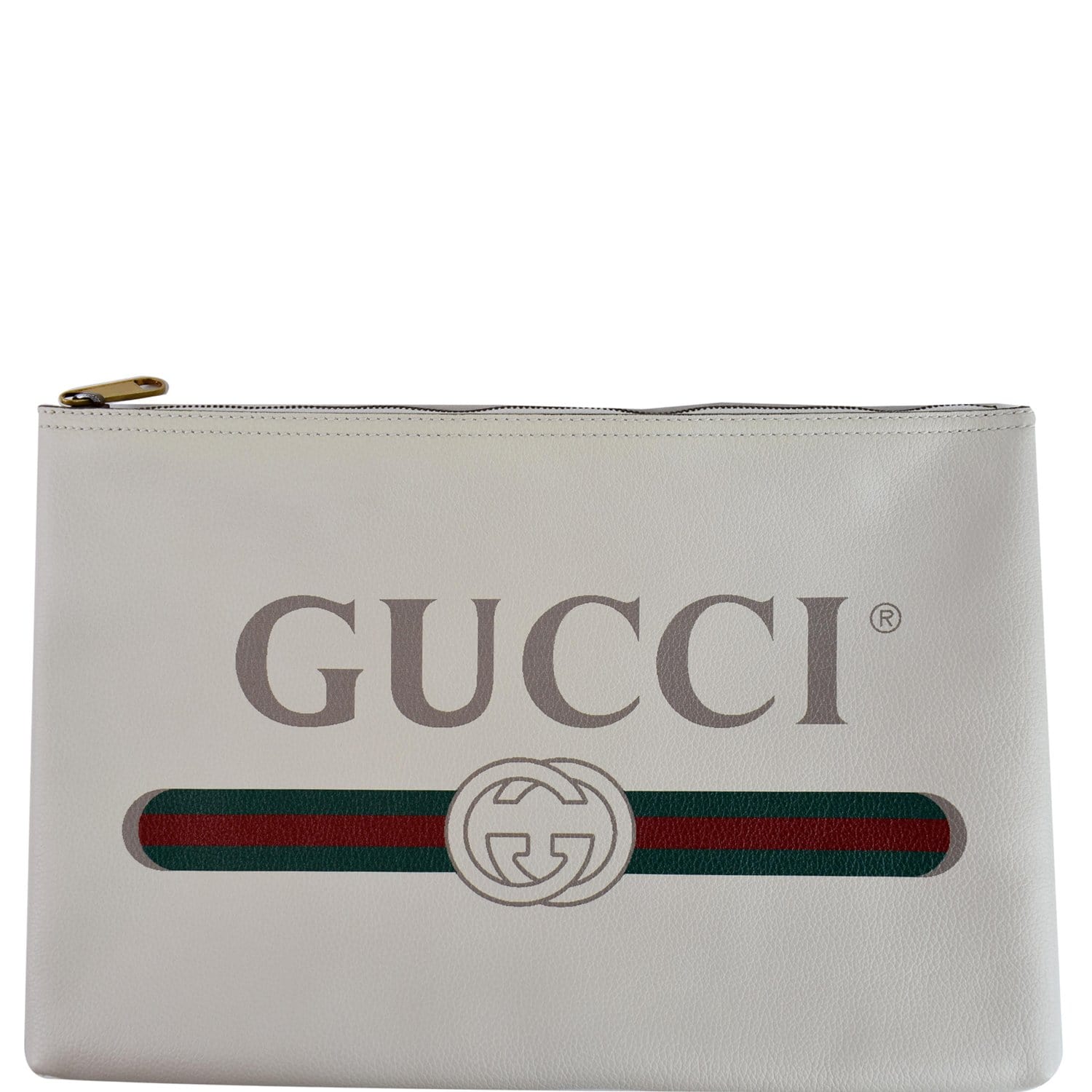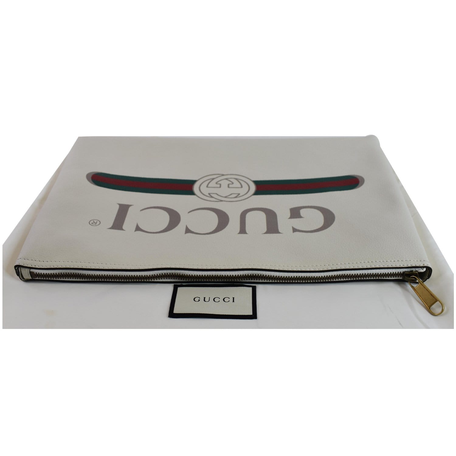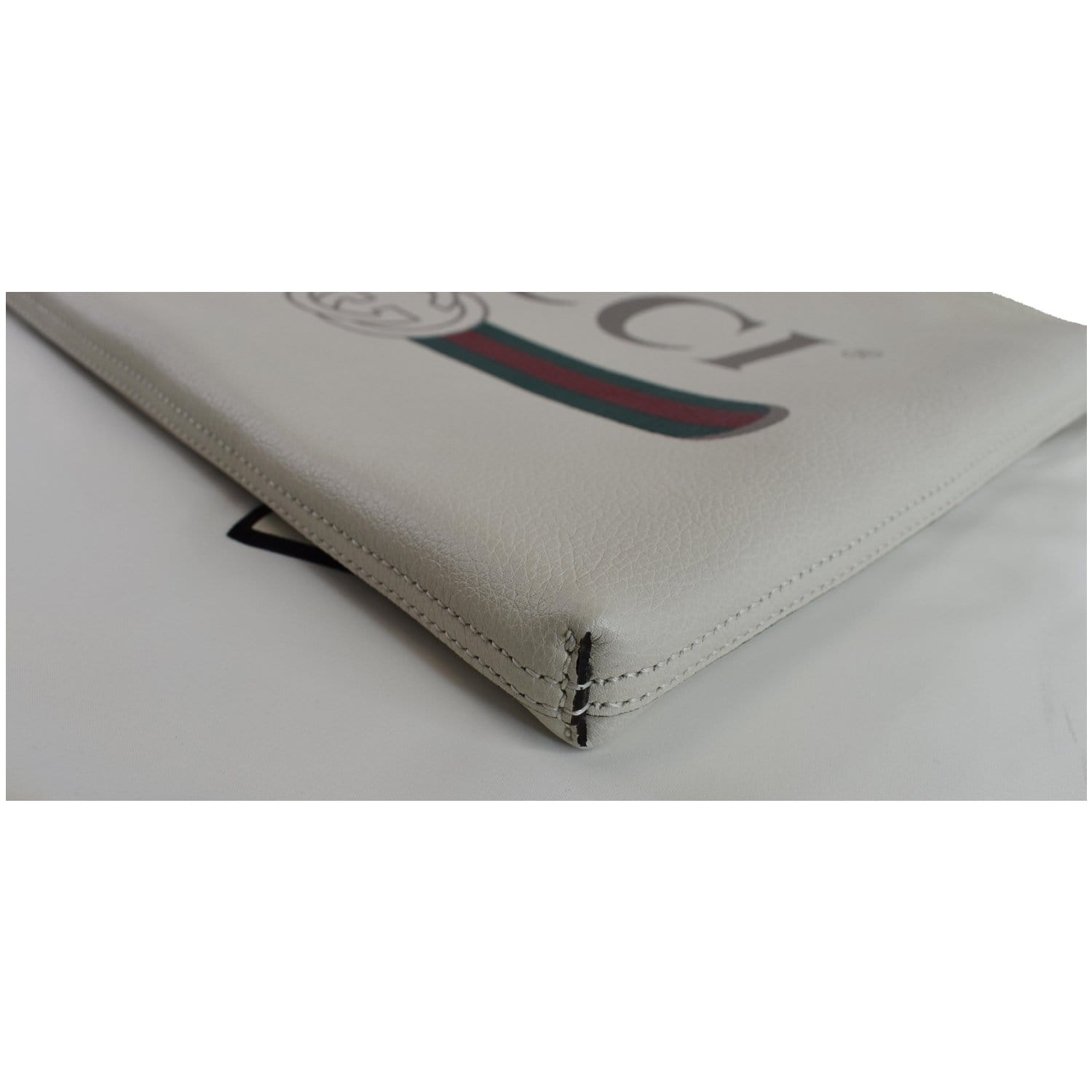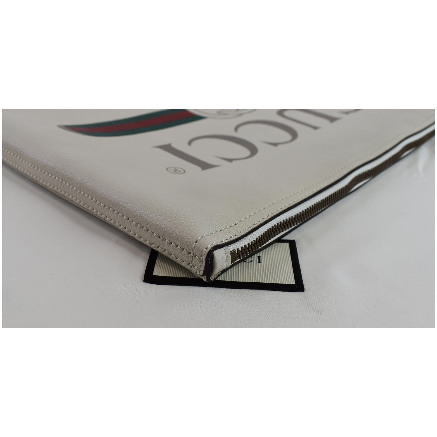 GUCCI Pebbled Leather Medium Logo Portfolio Clutch White 500984 - Last Call