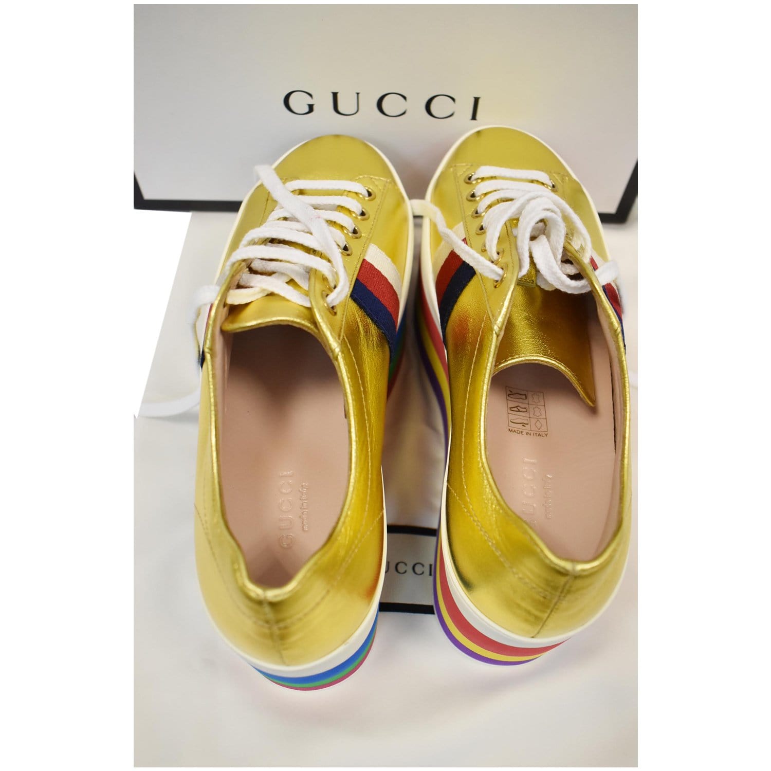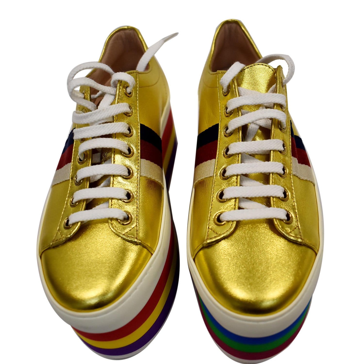 Peggy Rainbow Metallic Nappa Silk Platform Sneakers Gold 474538 Size 36 - Final Sale