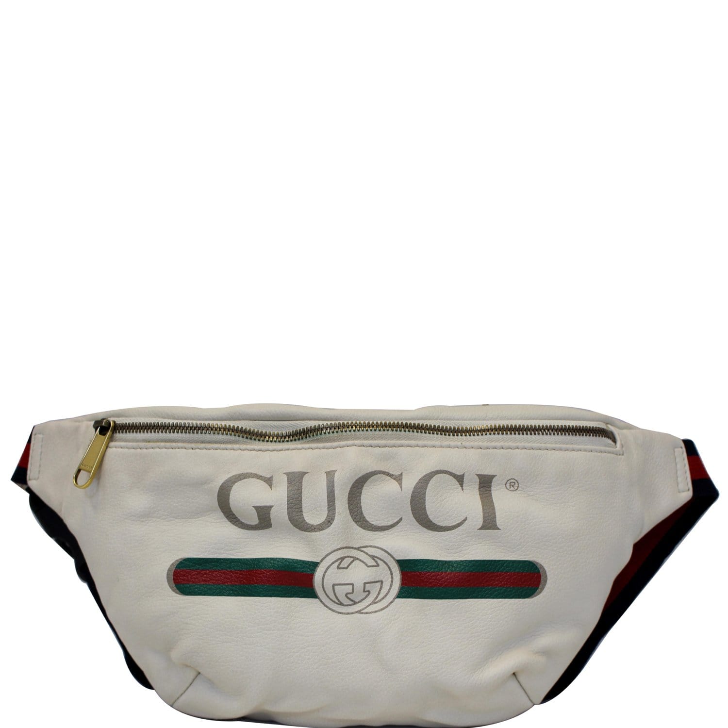 GUCCI Print Leather Medium Belt Waist Bum Bag White 530412