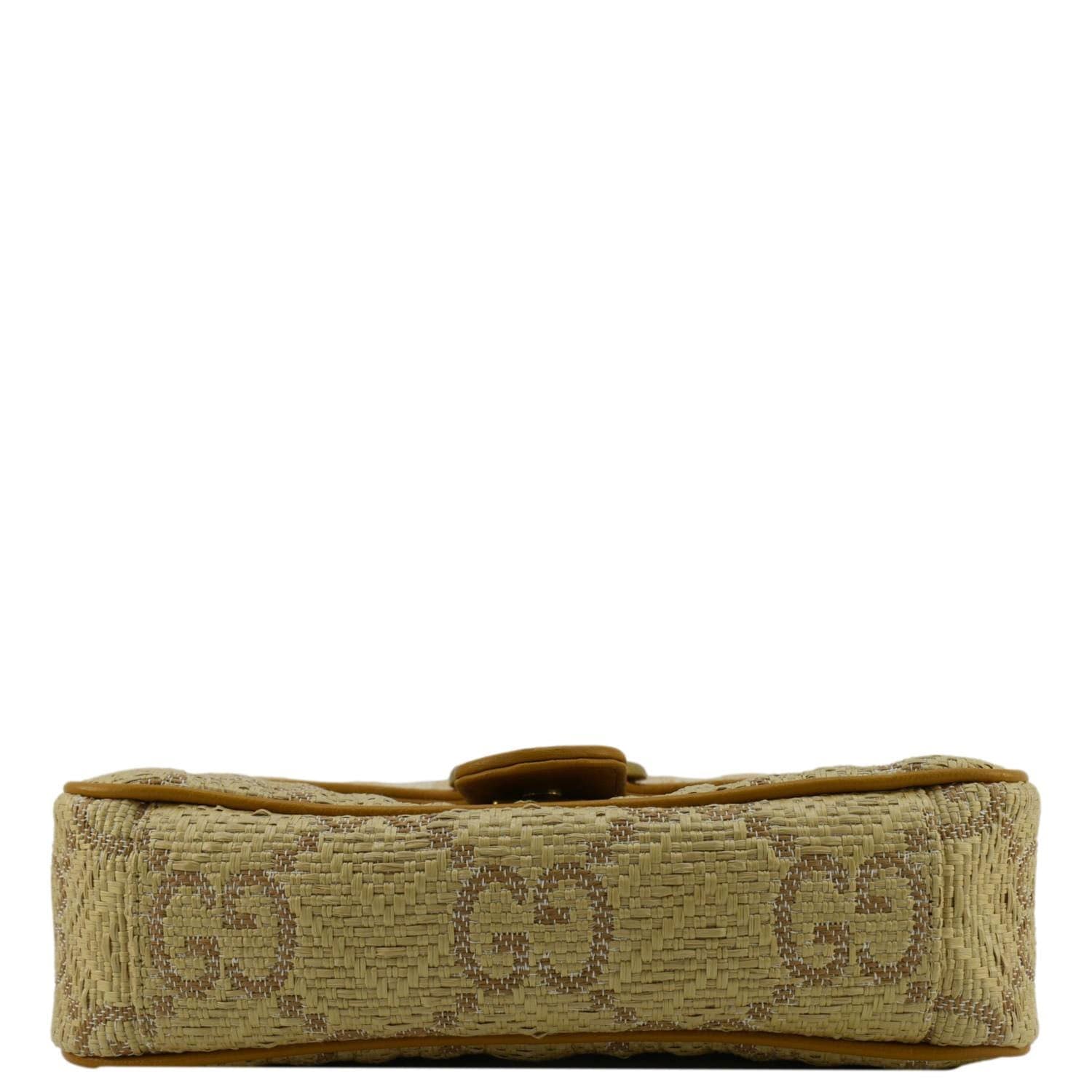 GUCCI GG Marmont Small Raffia Shoulder Bag Natural Beige 443497