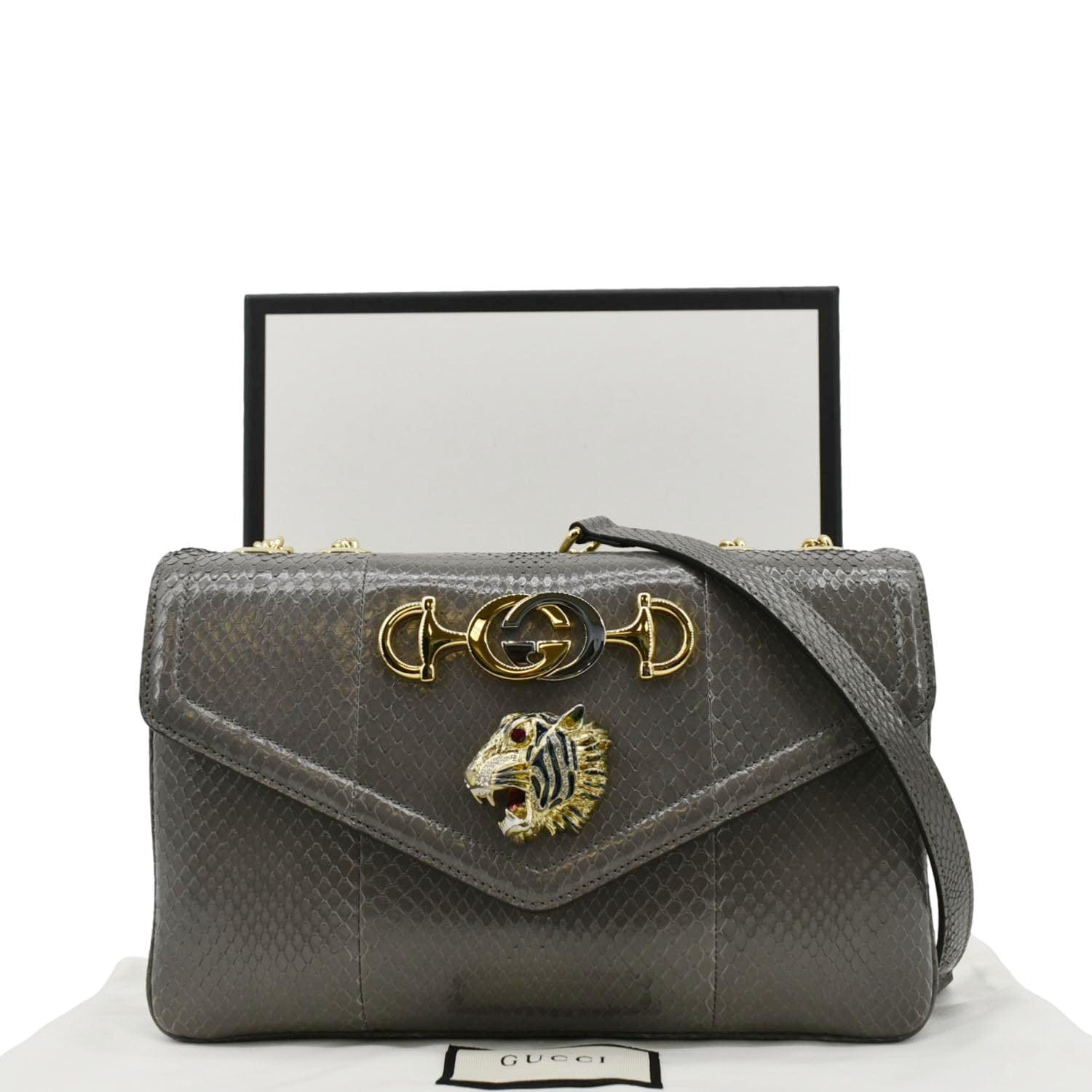 GUCCI Rajah Medium Chain Leather Shoulder Bag Grey