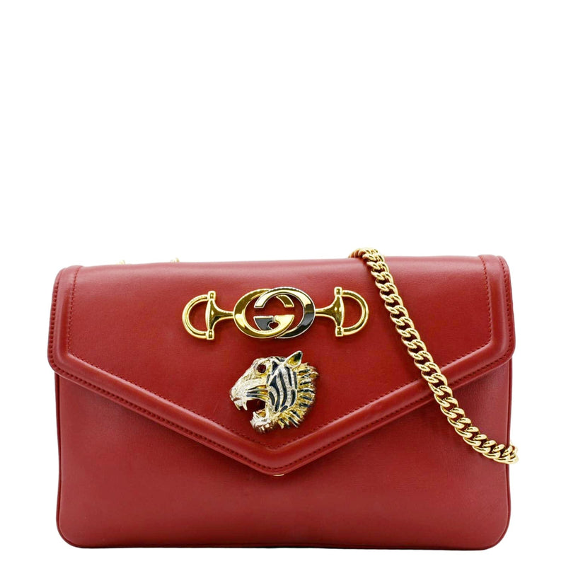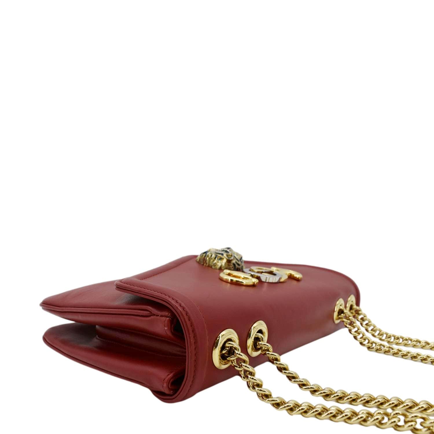 GUCCI Rajah Tiger Head Leather Chain Shoulder Bag Red 537241