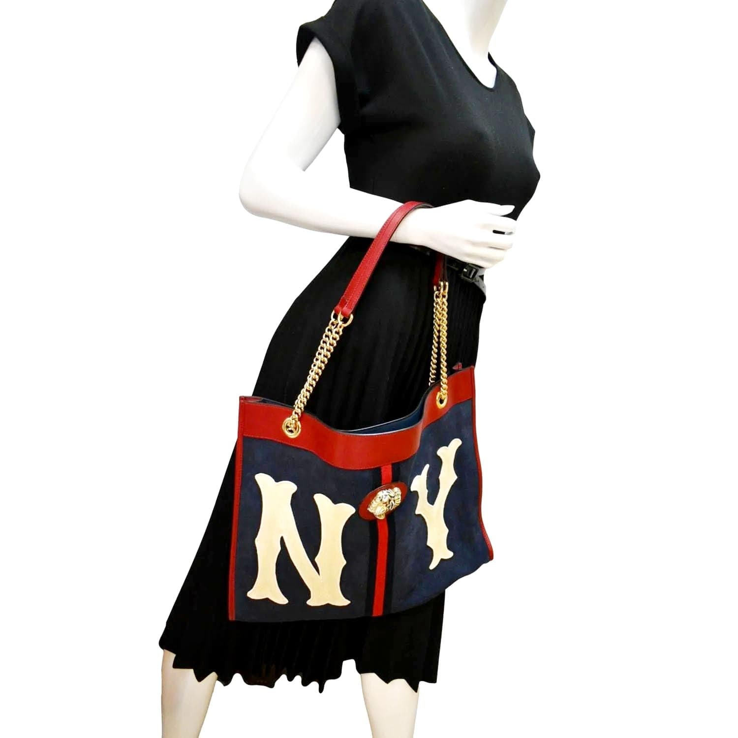 Gucci Rajah Large Leather Tote Shoulder Bag in Navy Blue