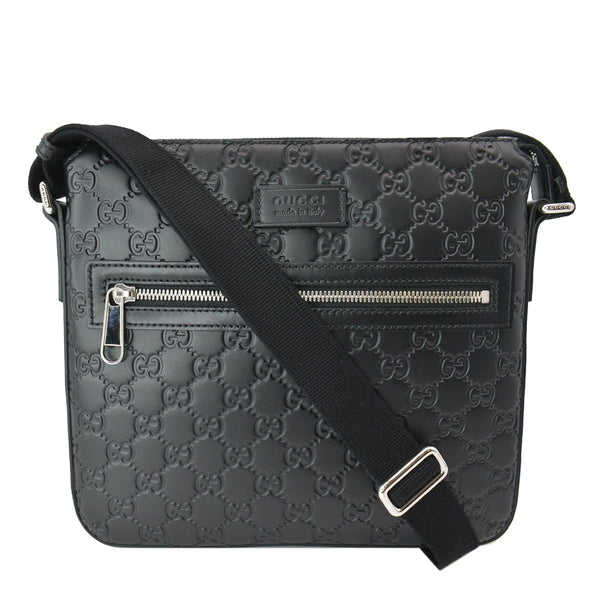 GUCCI GG Signature Leather Black Messenger Bag 406410