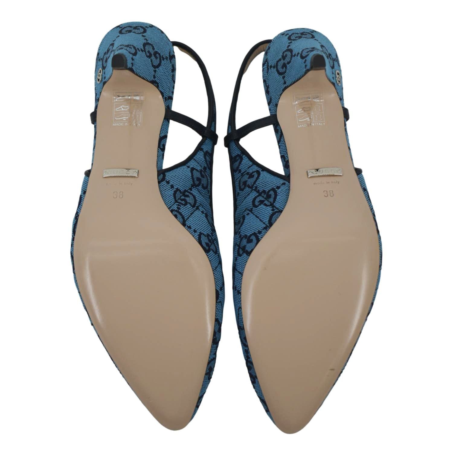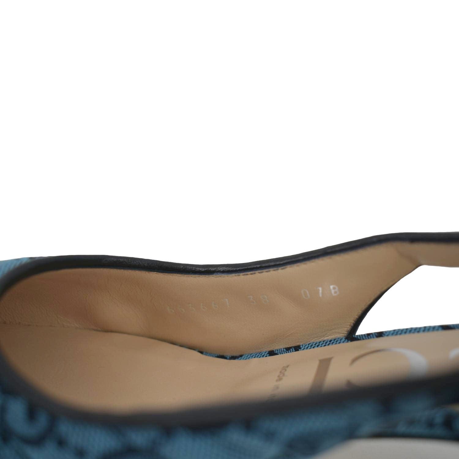 GUCCI Slingback GG Canvas Pumps Size 38 Blue 663667
