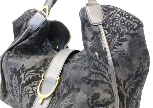 Soft Stirrup Nubuck Black Suede Shoulder Bag - Sale