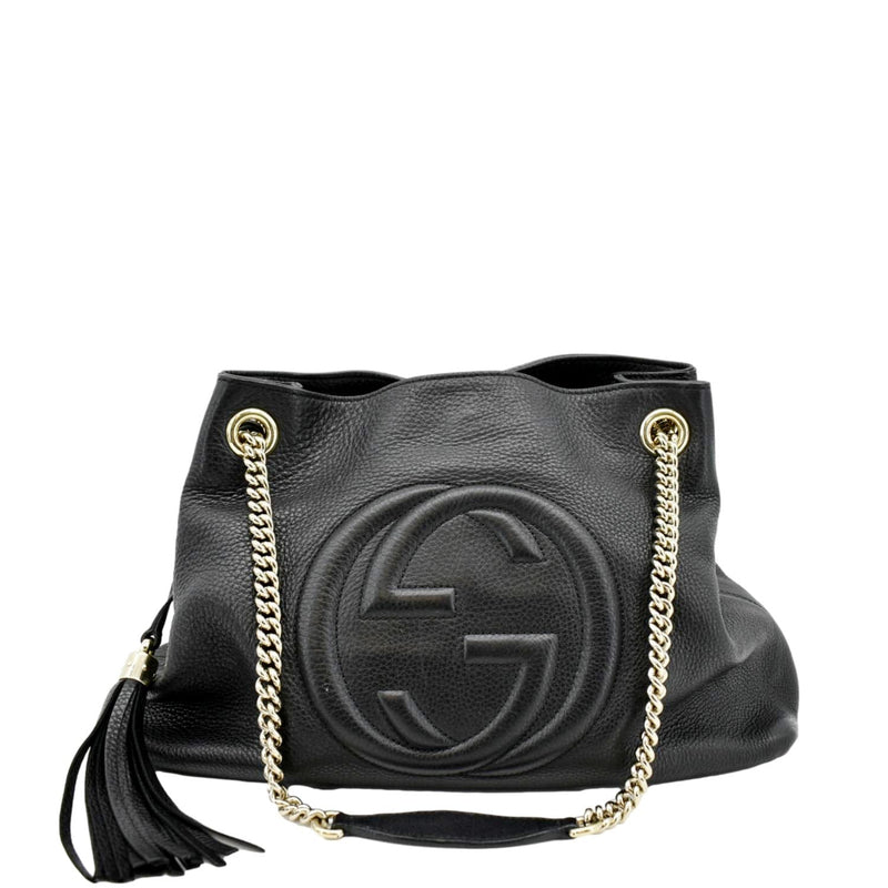 The Gucci Soho Medium Shoulder Bag, model 308982, features luxurious leather craftsmanship. Its elegant design includes the iconic interlocking GG logo, making it a timeless and versatile accessory for any wardrobe.
