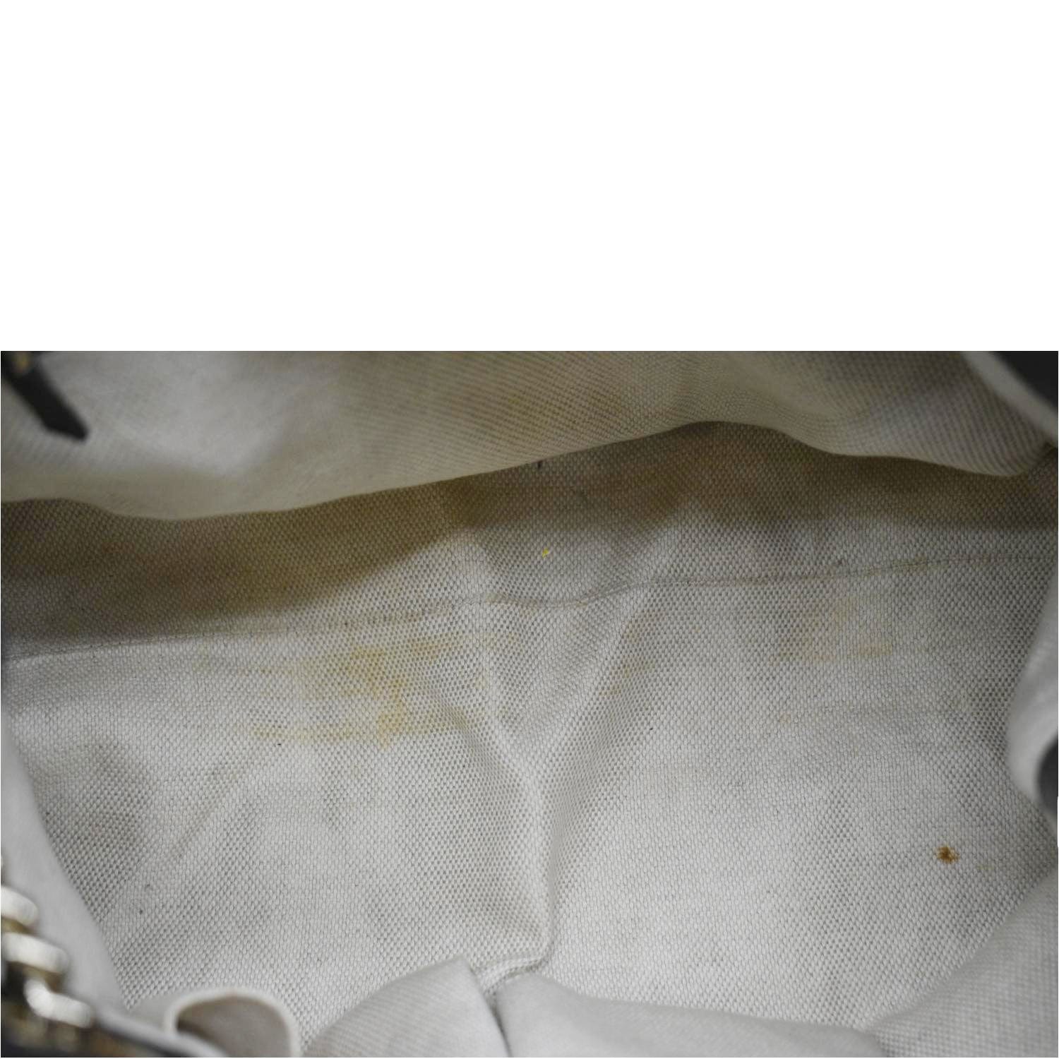 Good - The Item shows signs of use and has slight corner rubbing. It has stain marks on the interior. Discoloration and slight signs of use on the gold-colored hardware. The item is without any unpleasant smell
