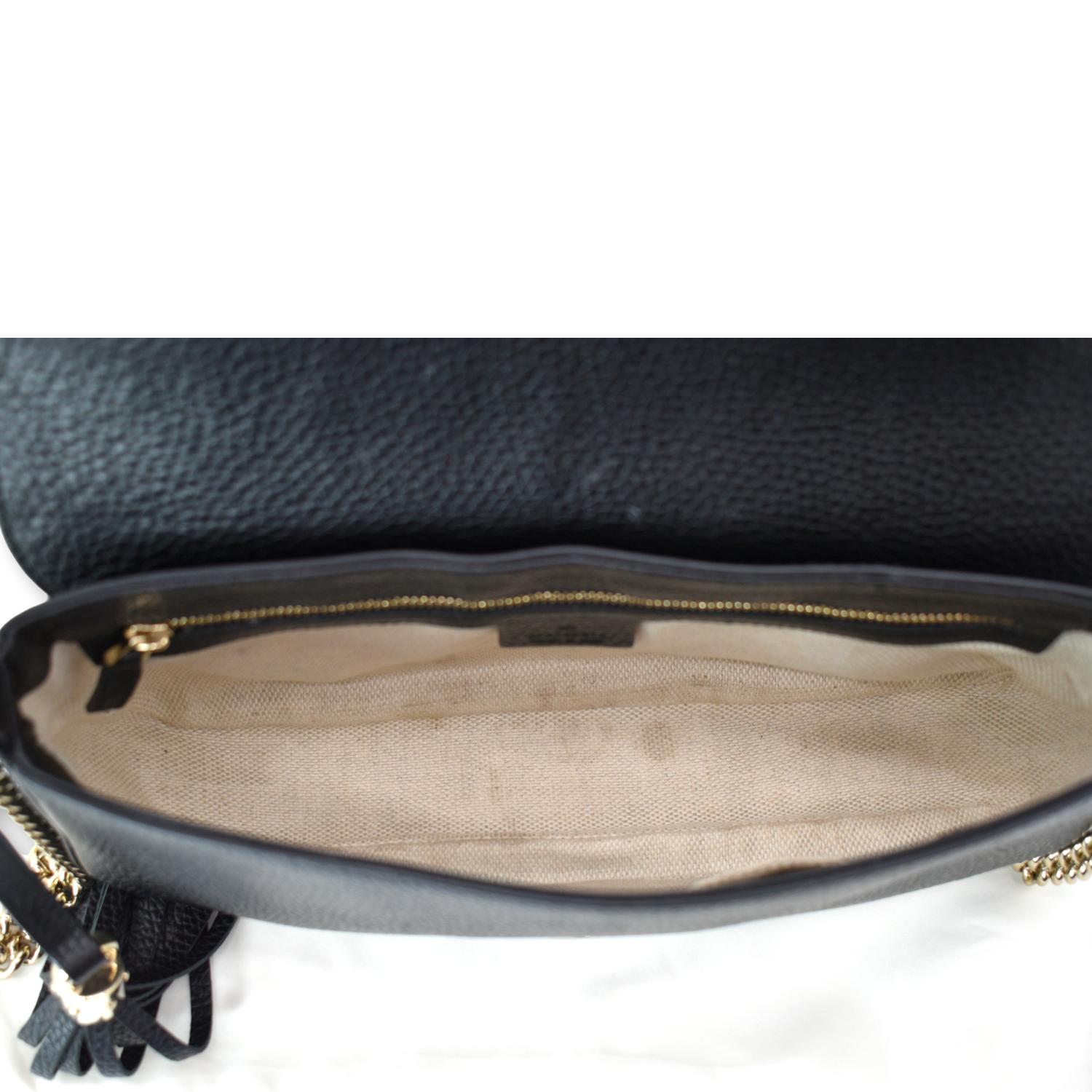 GUCCI GG Soho Tassel Chain Leather Crossbody Bag Beige Black