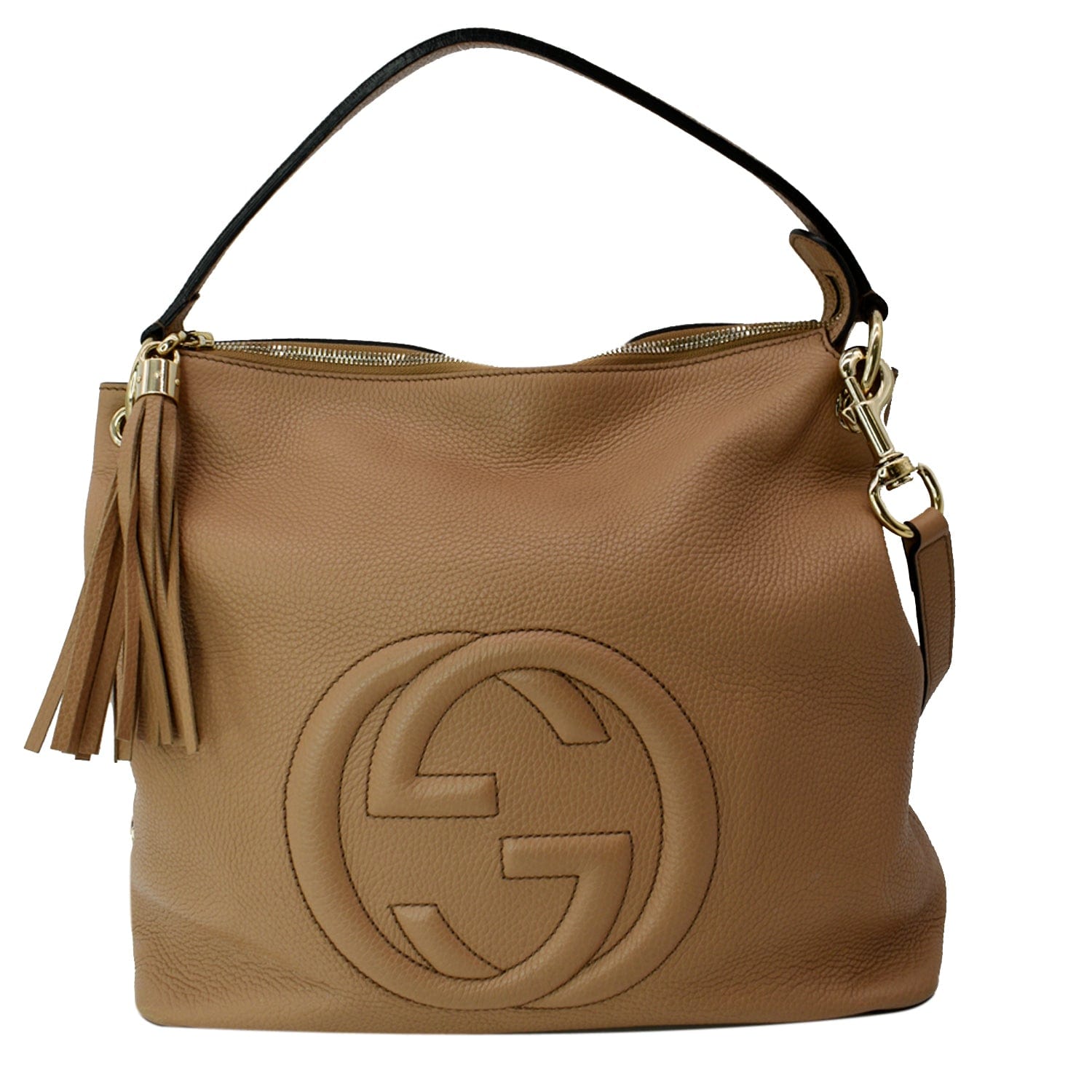GUCCI Soho Pebbled Leather Hobo Shoulder Bag Rose Beige 408825