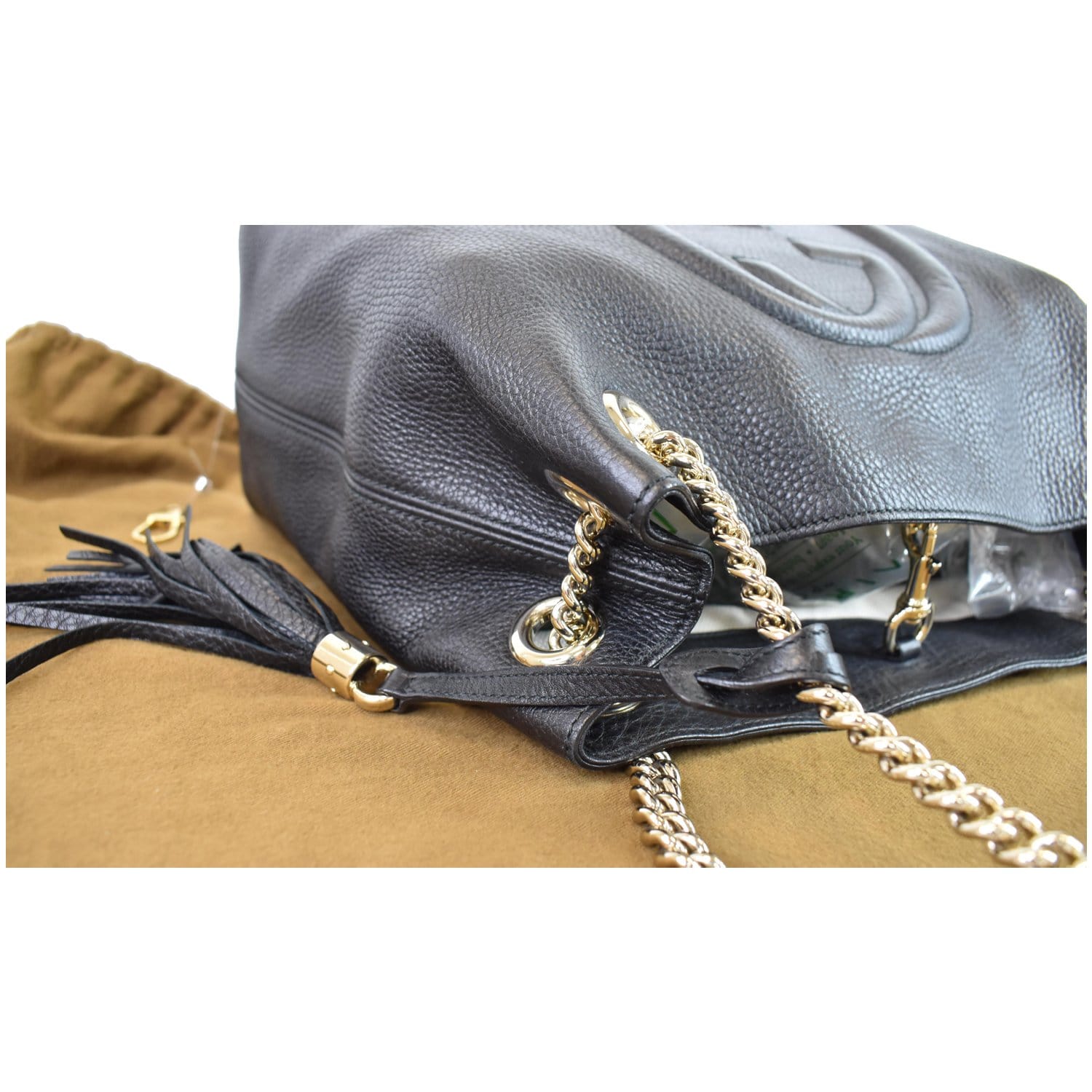 GUCCI Soho Pebbled Leather Chain Shoulder Bag 308982 Black