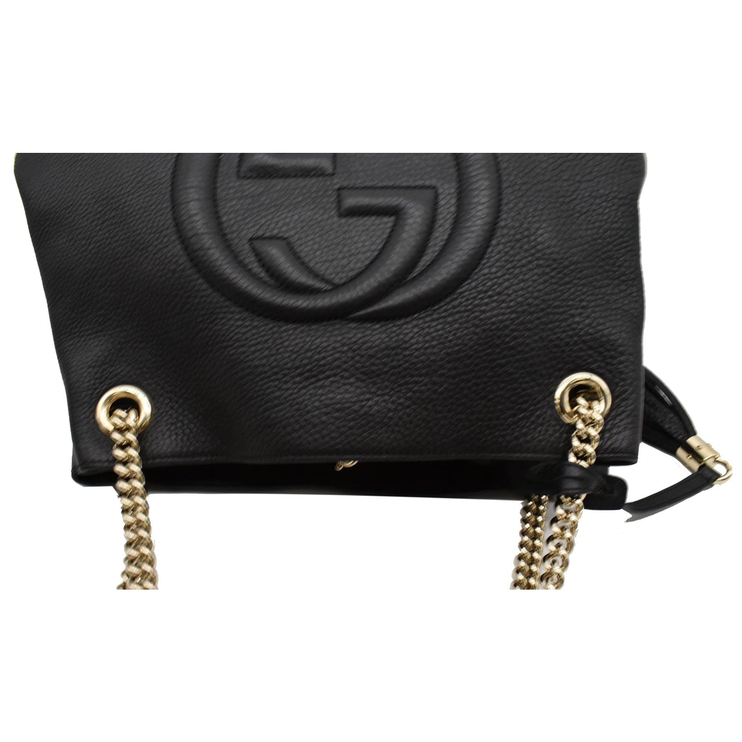 Soho Pebbled Leather Chain Shoulder Bag Black 308982