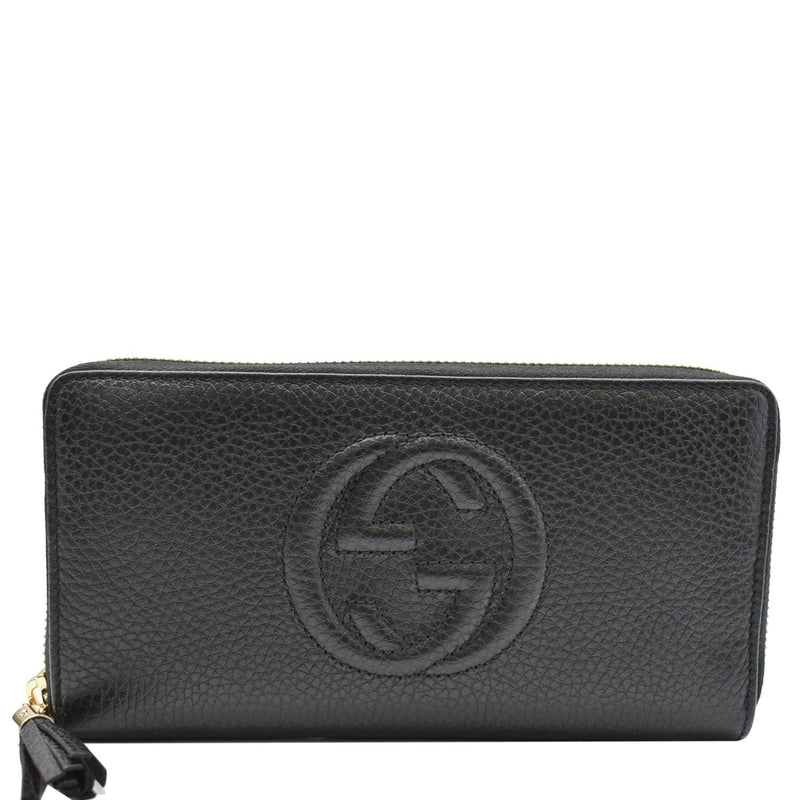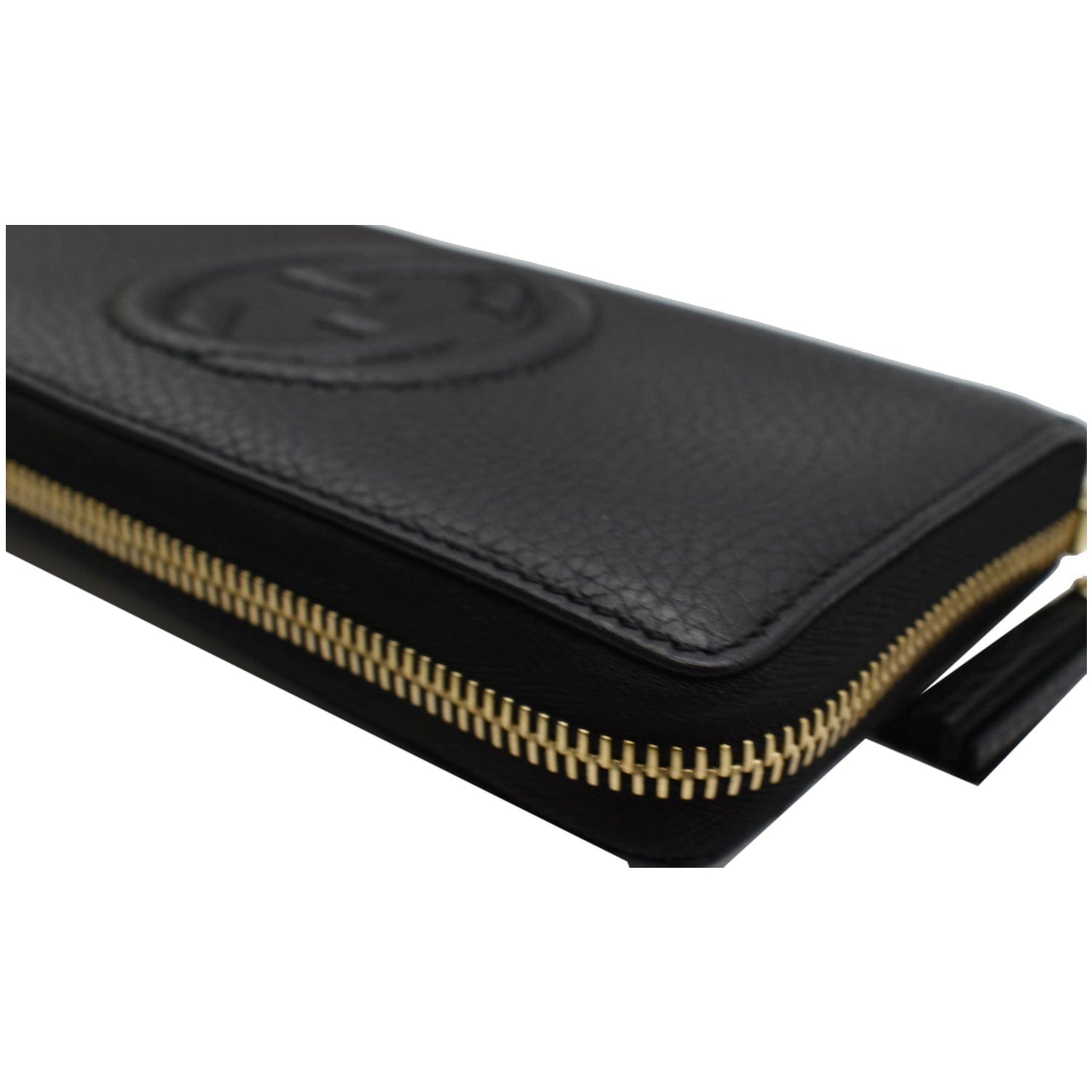 GUCCI Soho Zip Around Pebbled Calfskin Leather Wallet Black 598187