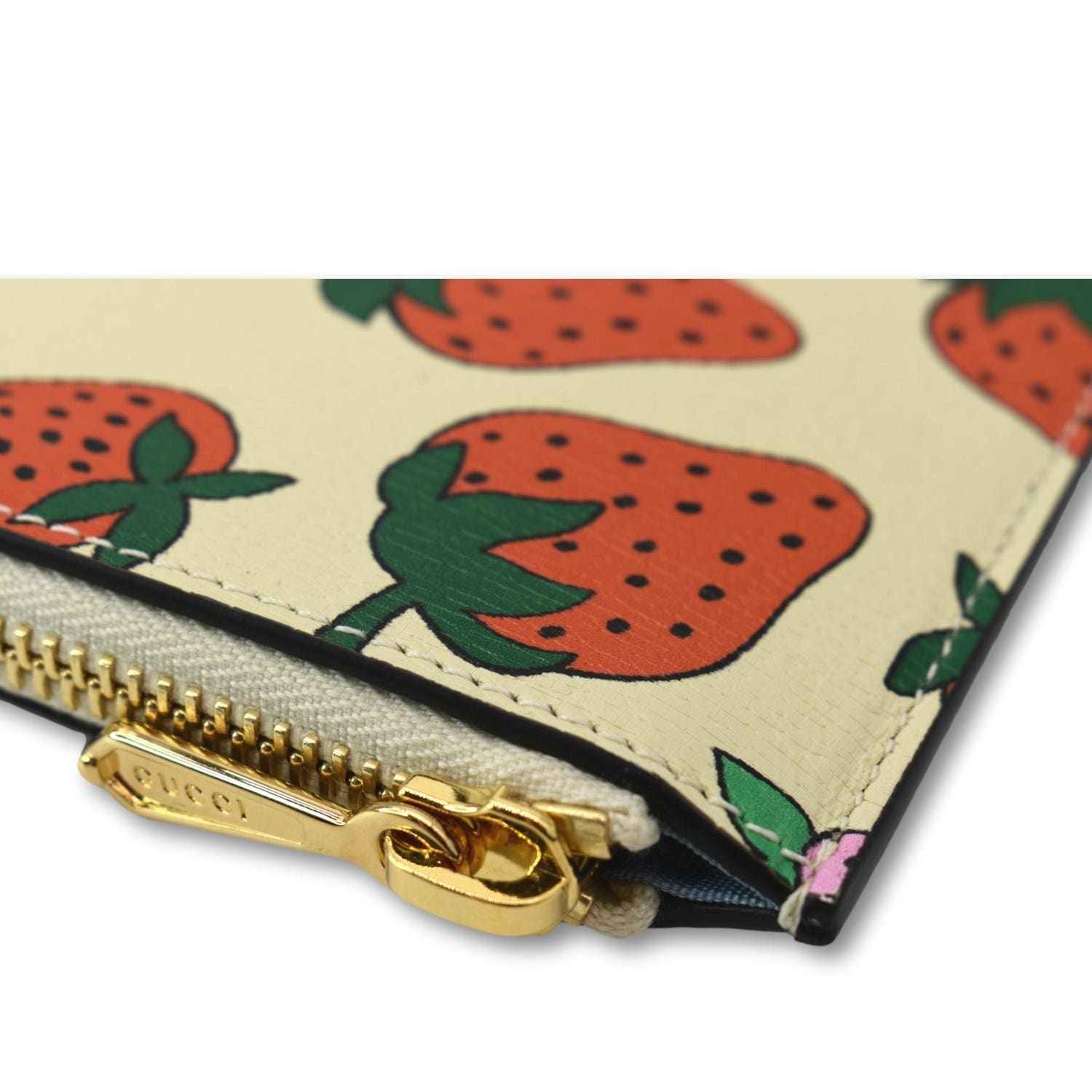 GUCCI Zumi Strawberry Printed Leather Pouch Multicolor 570728
