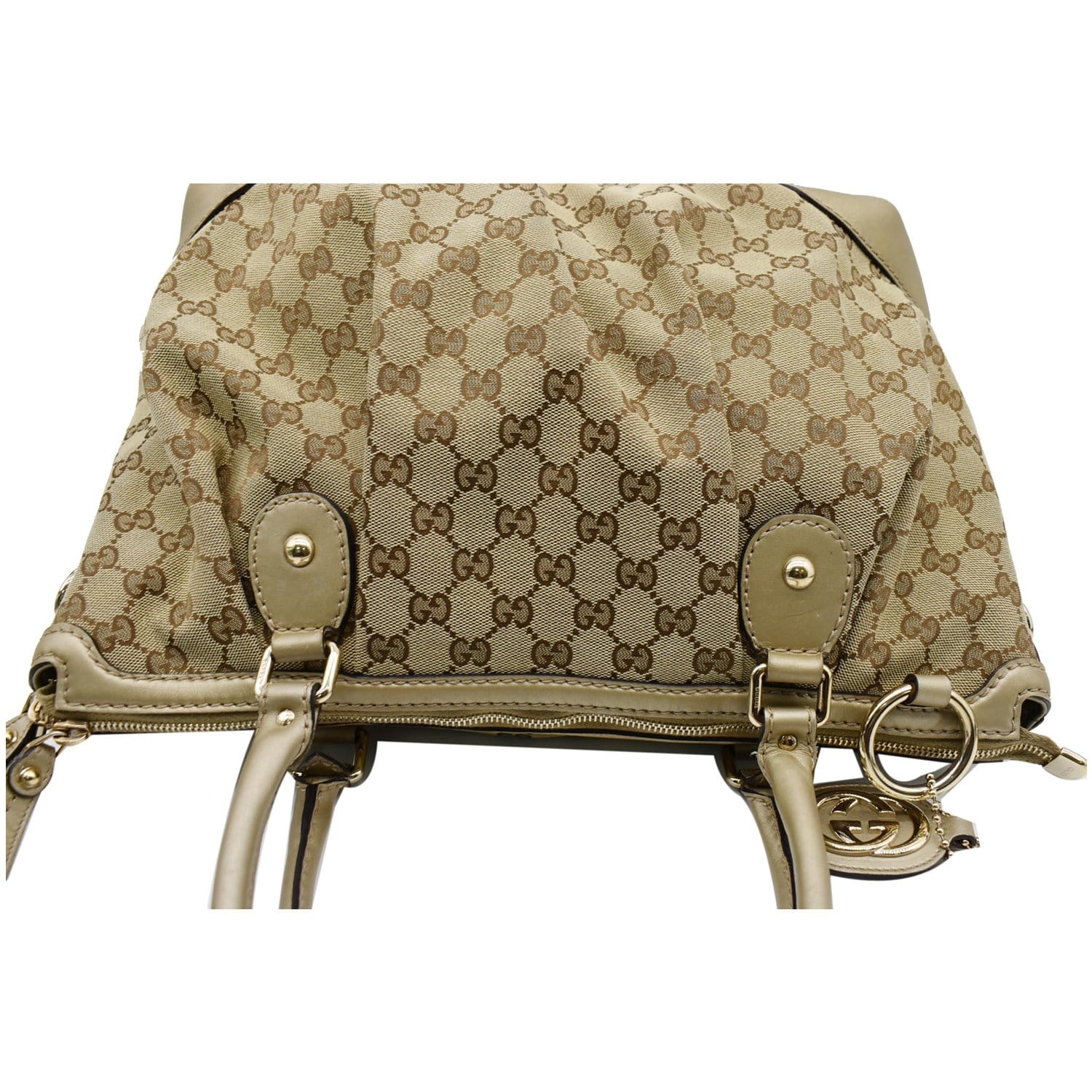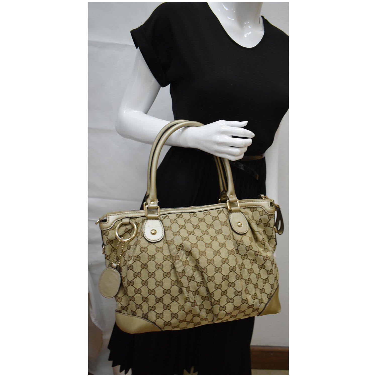 GUCCI Sukey GG Canvas Top Handle Satchel Bag Beige 285730