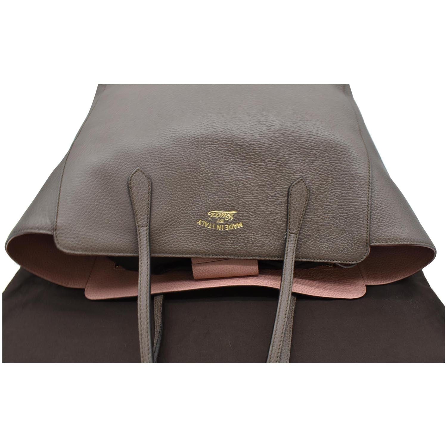 GUCCI Swing Pebbled Calfskin Leather Tote Bag Taupe 354397