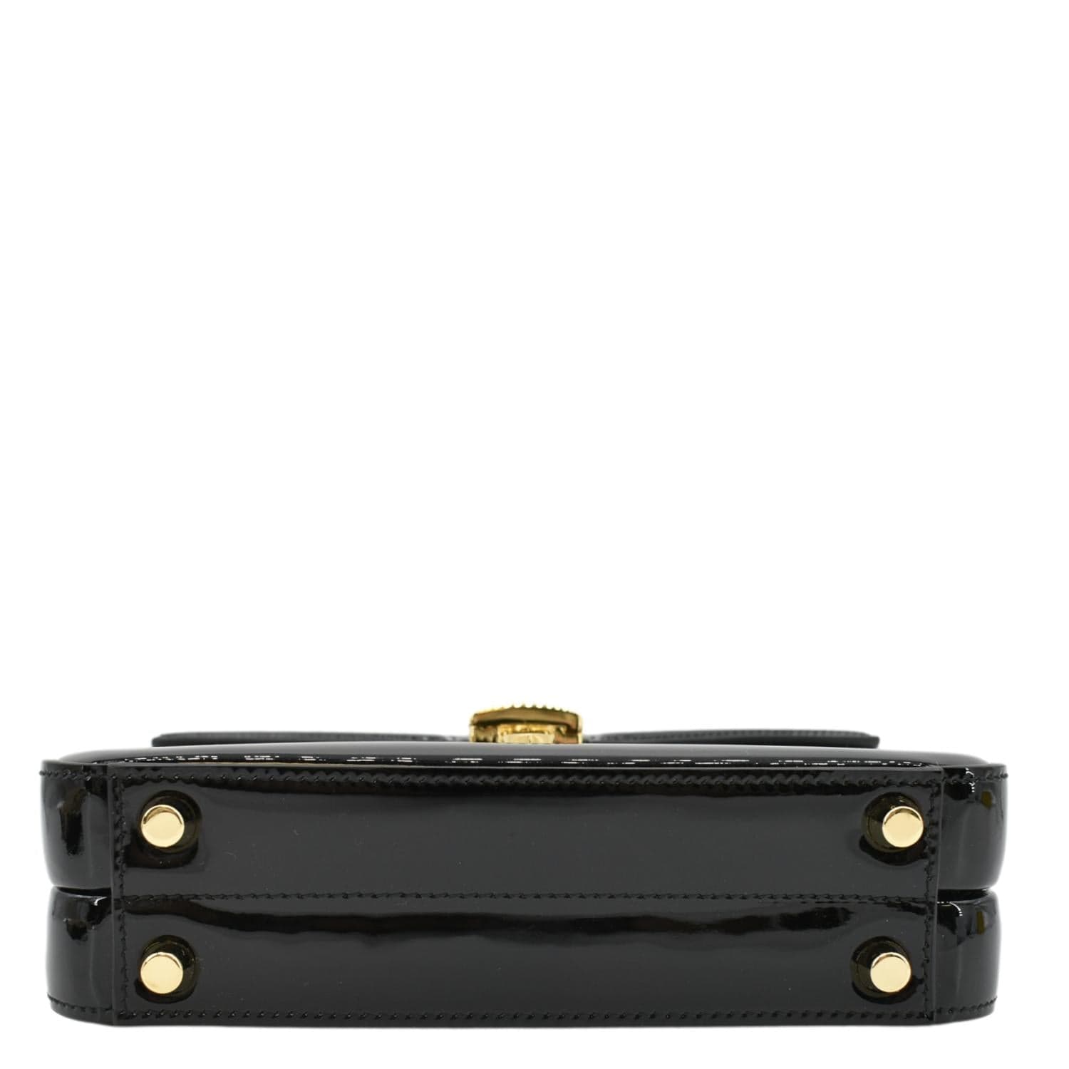 GUCCI Sylvie 1969 Patent Leather Top Handle Crossbody Bag Black 589479