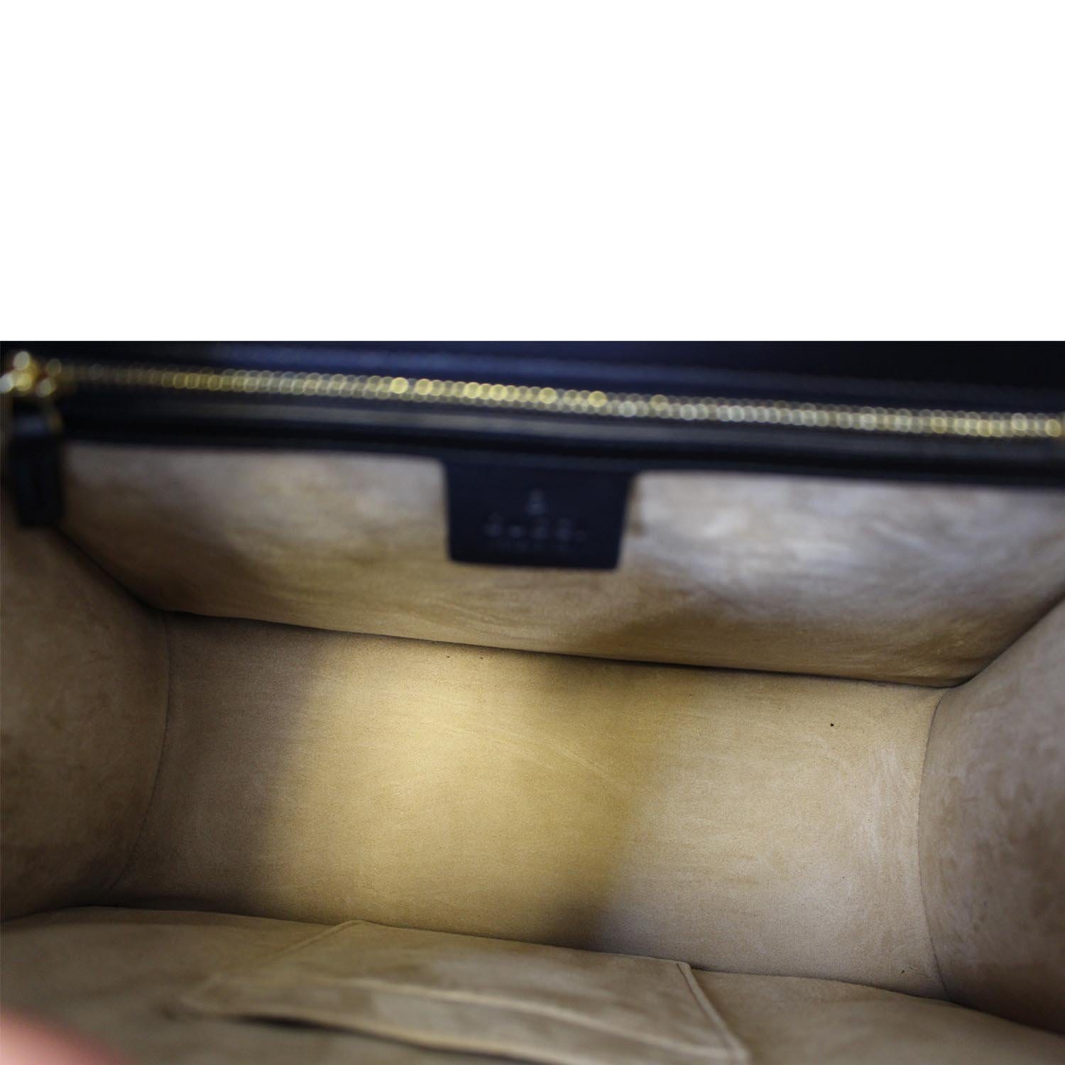 GUCCI Sylvie Animal Studs Calfskin Medium Top Handle Bag Black