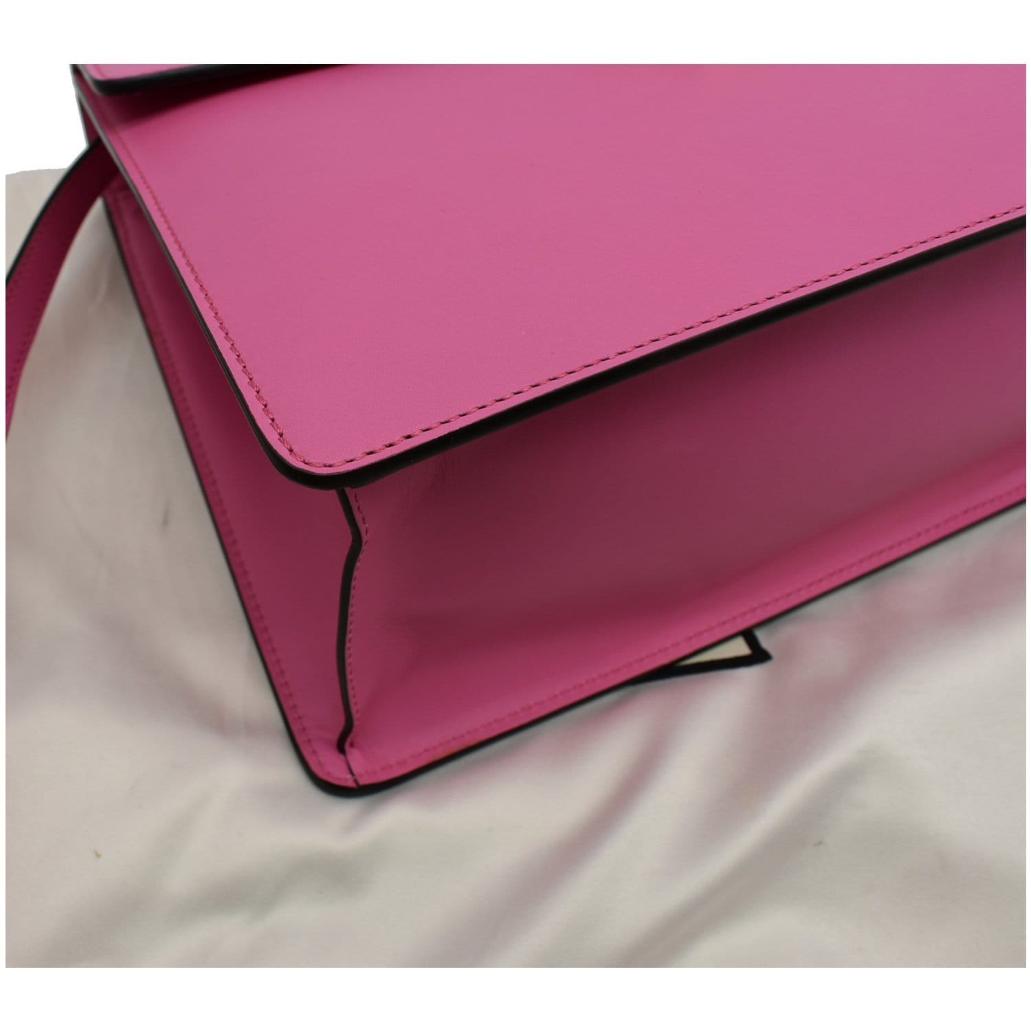 GUCCI Sylvie Medium Web Smooth Leather Top Handle Shoulder Bag Pink 431665