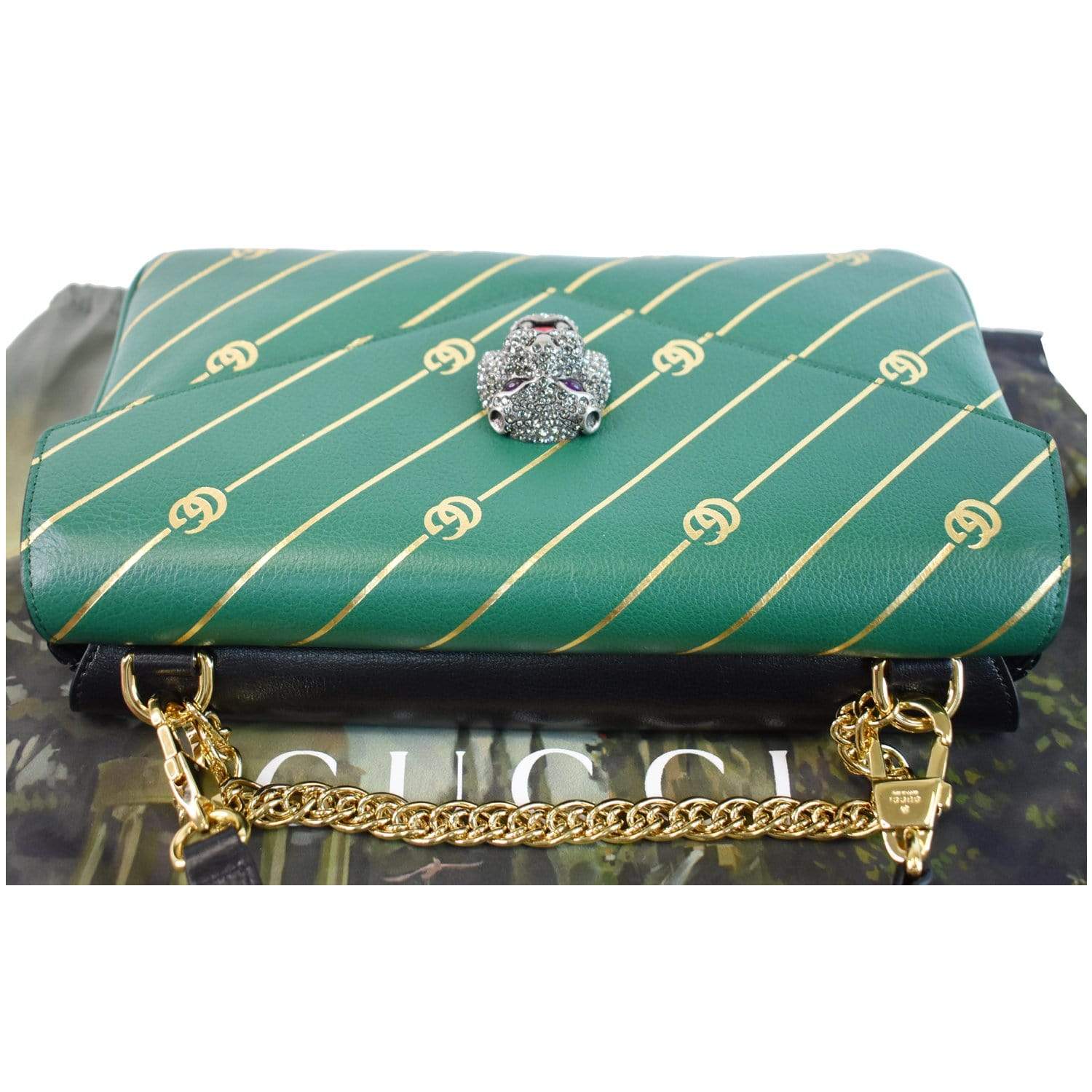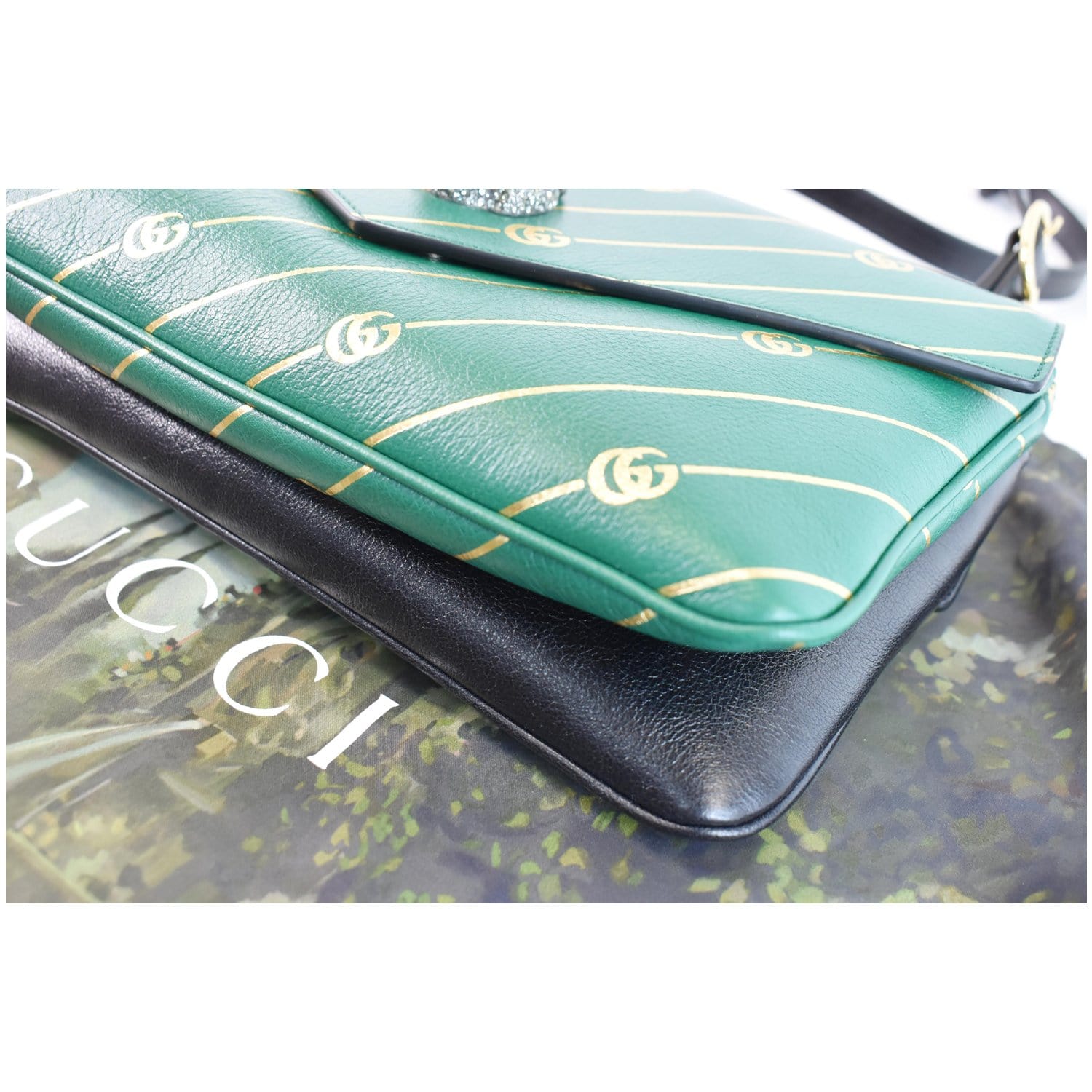 GUCCI Thiara Medium Double Smooth Leather Shoulder Bag Green/Black 524822