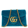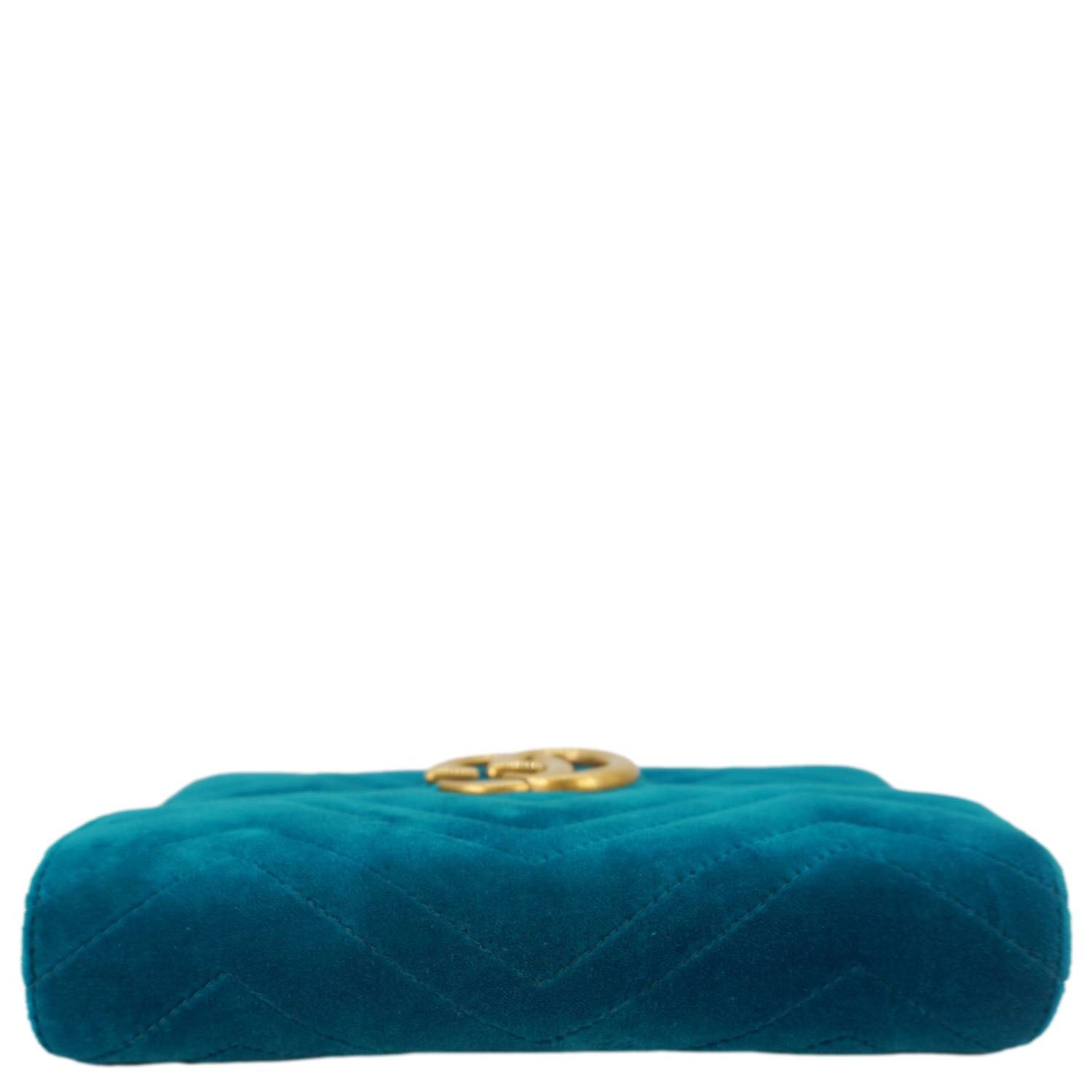 GUCCI GG Marmont Matelasse Velvet Chain Wallet Pavone Cyan 474575