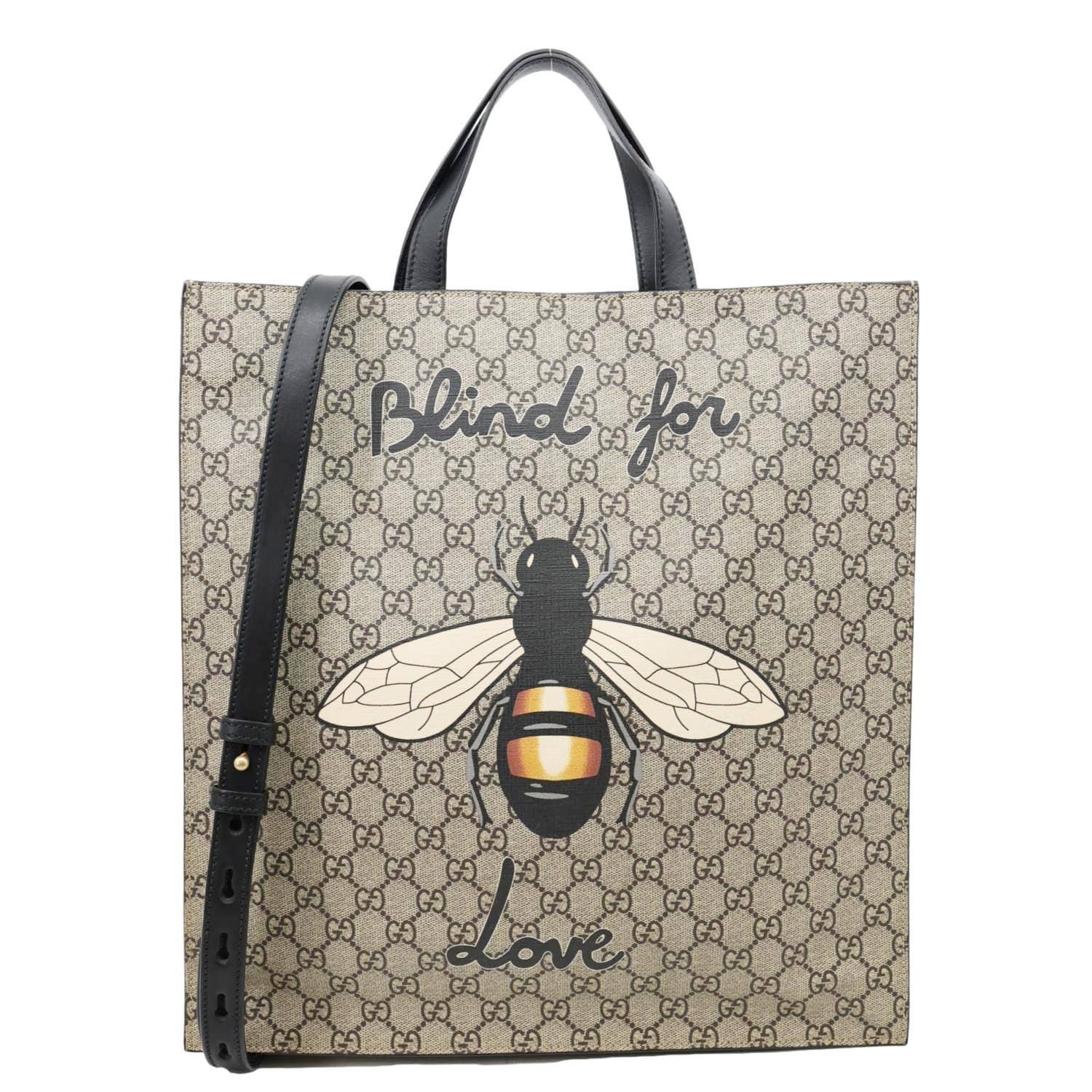 GUCCI Bee Blind For Love Print Soft GG Supreme Canvas Vertical Tote Bag Beige 450950