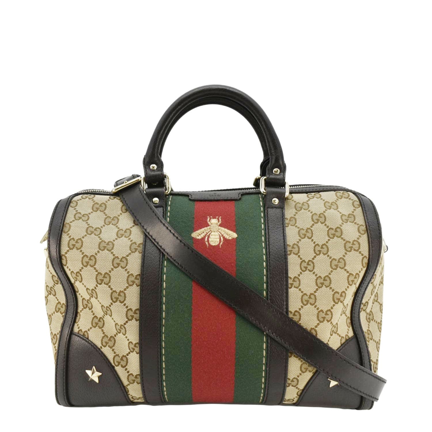 GUCCI Webby Bee GG Canvas Boston Bag Beige 406868