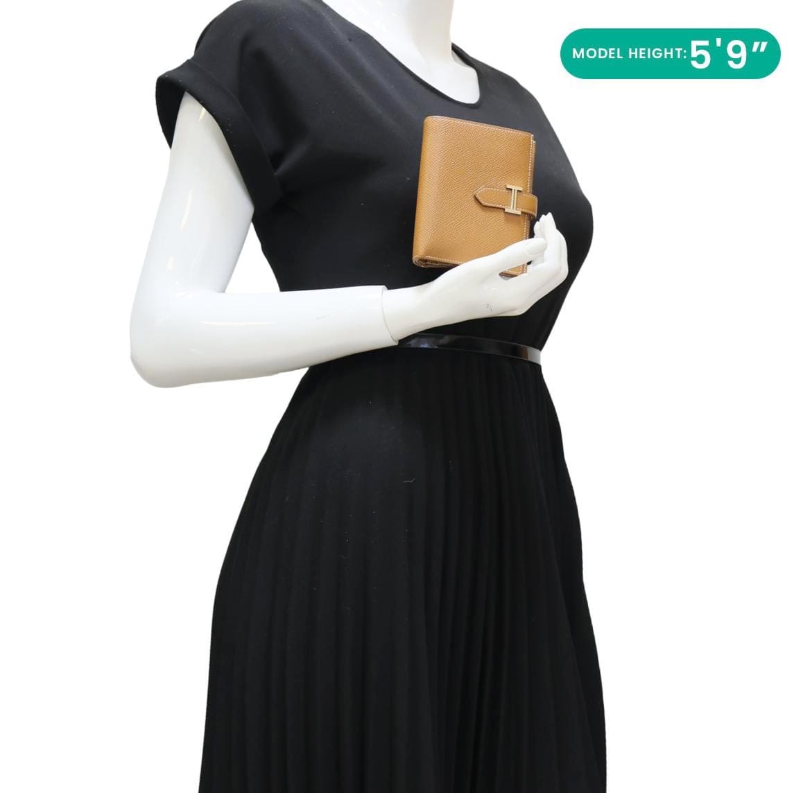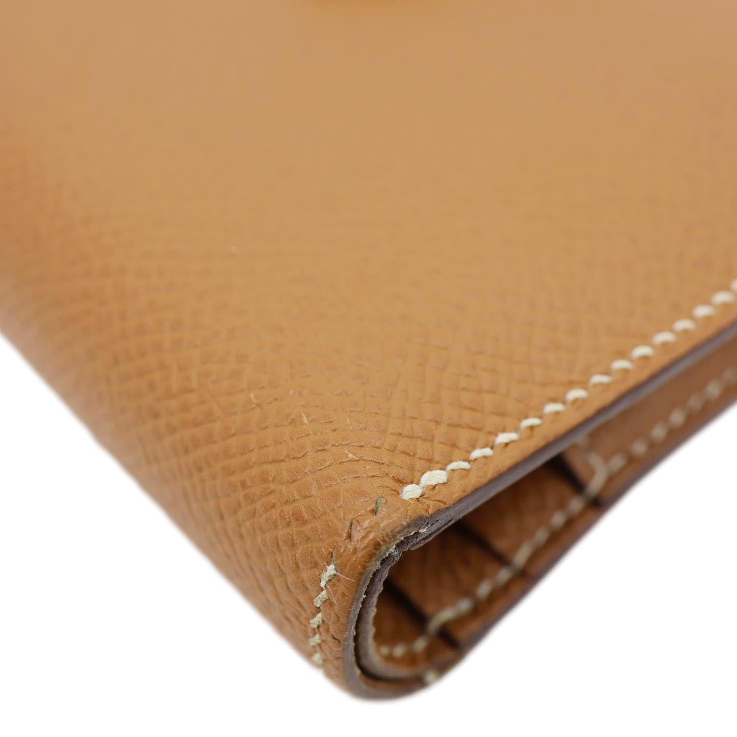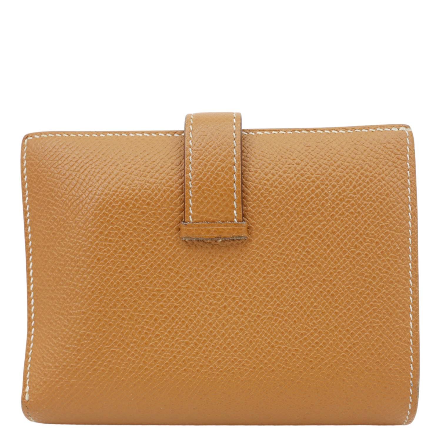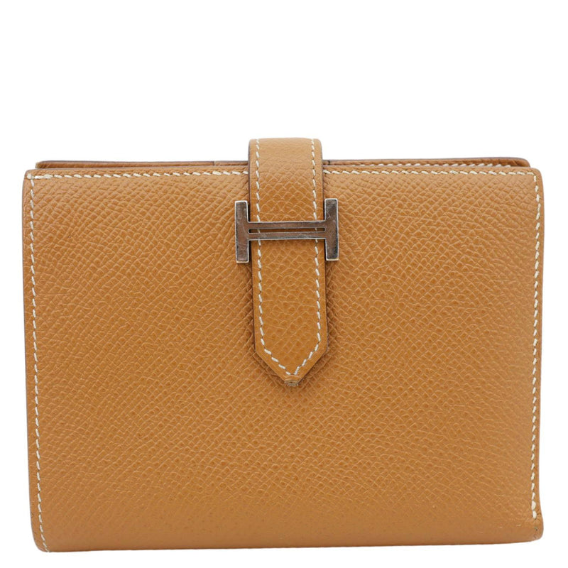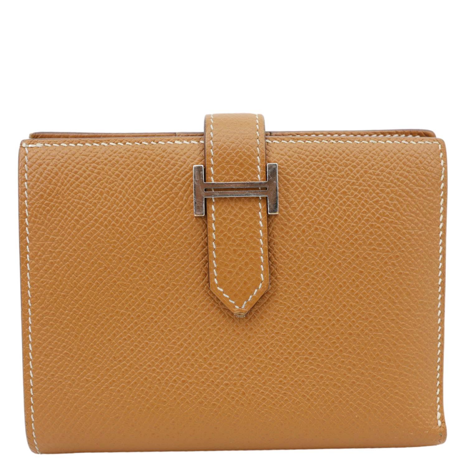 HERMÈS Béarn wallet in orange leather, crafted with sleek sophistication. Features multiple compartments and the signature "H" clasp for timeless elegance.