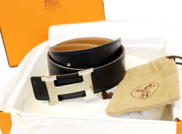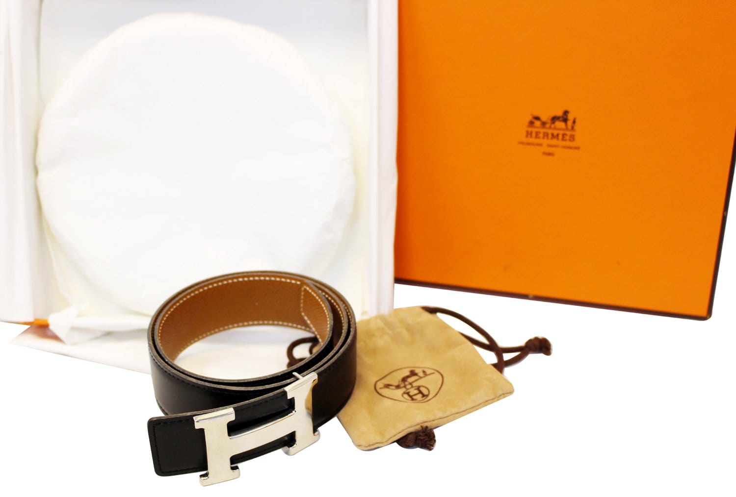 HERMES Belt Constance Buckle H Reversible Black Brown 60cm