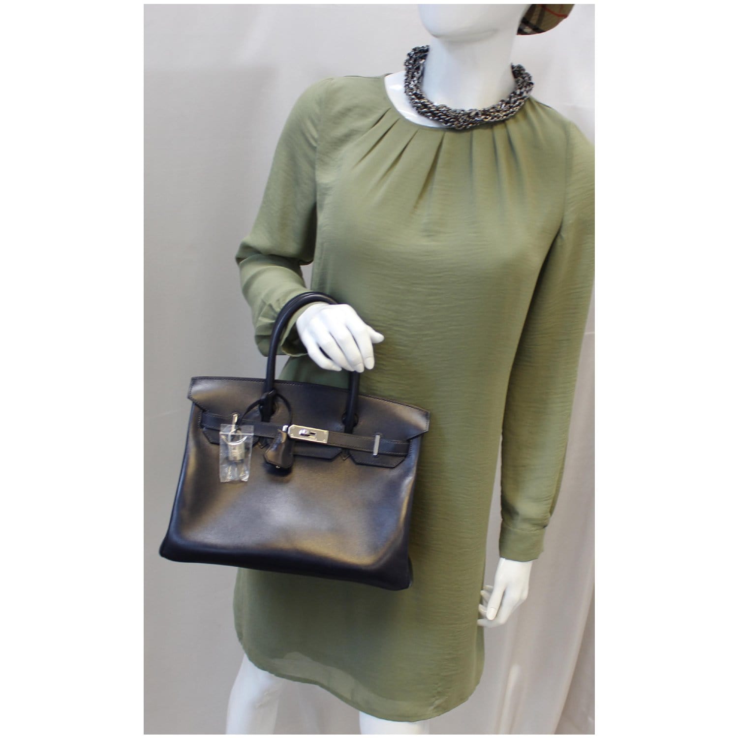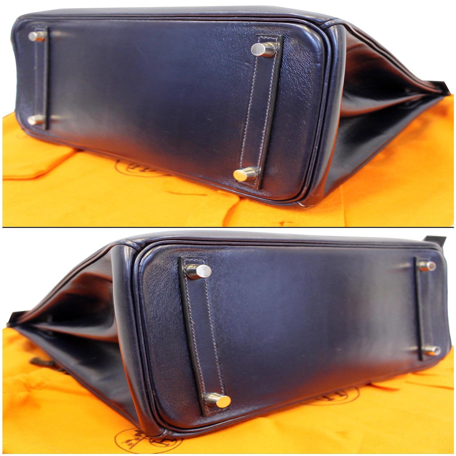 HERMES Birkin 30cm Smooth Calf Leather Silver Hardware Bag Navy Blue