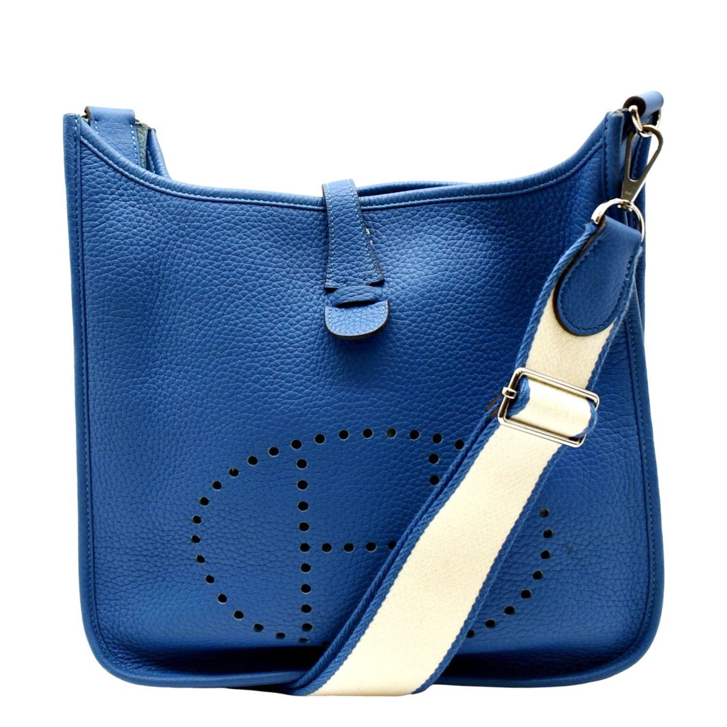 HERMES Evelyne PM Taurillon Clemence Crossbody Bag Blue