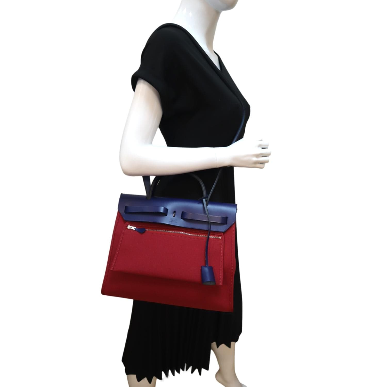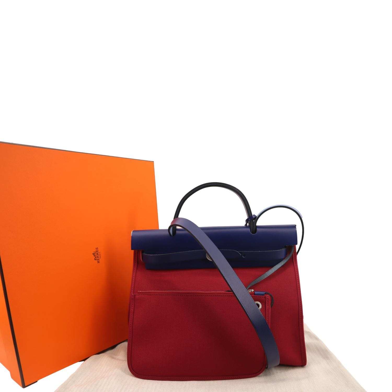 HERMES Herbag Zip Retourne 31 Toile Canvas Shoulder Bag Red