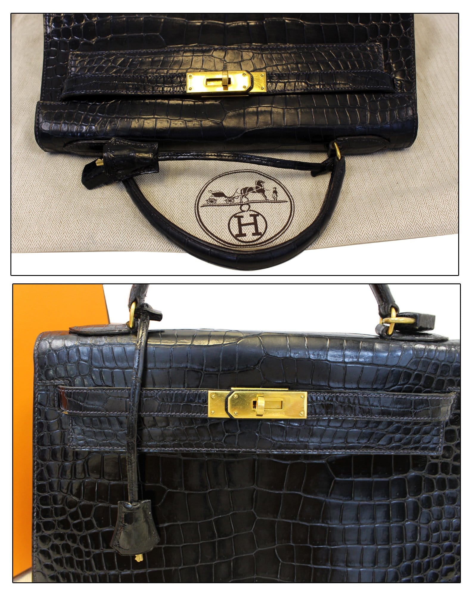 HERMES Kelly Crocodile 32 cm Black with Gold Hardware