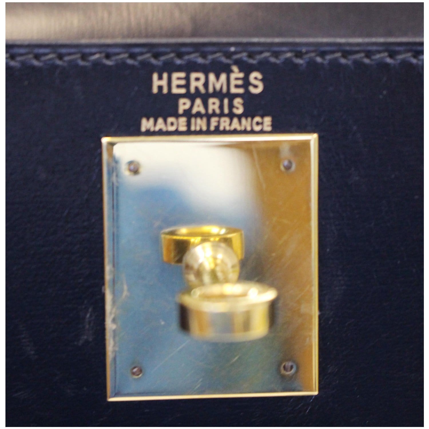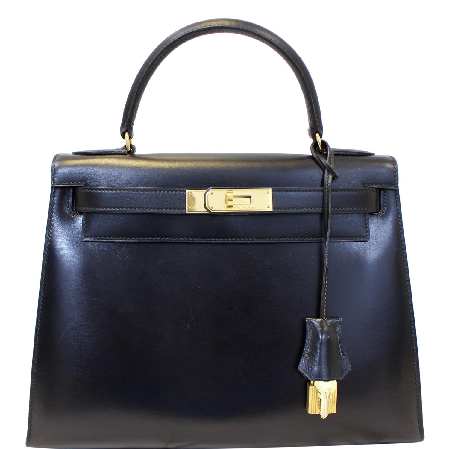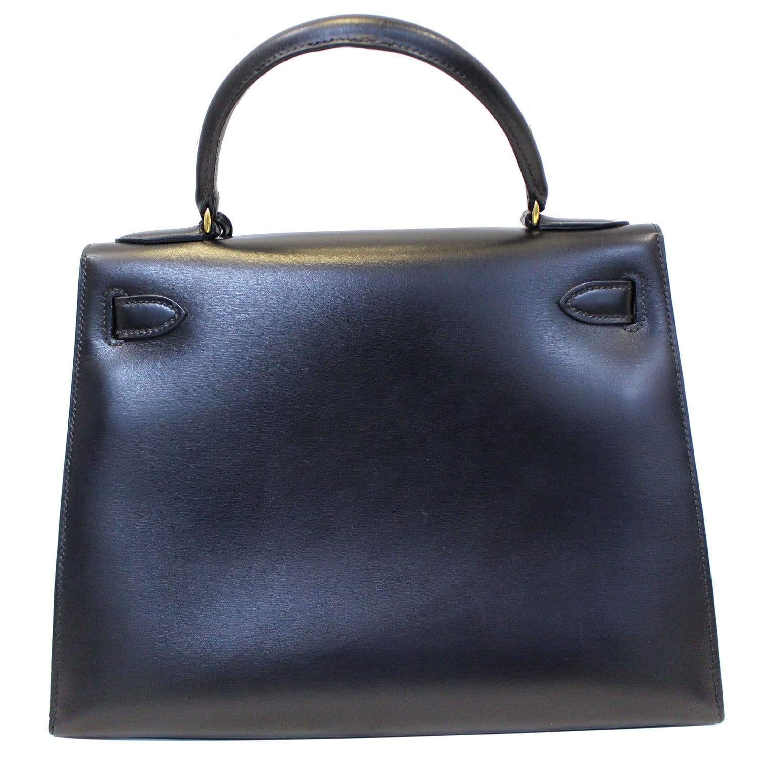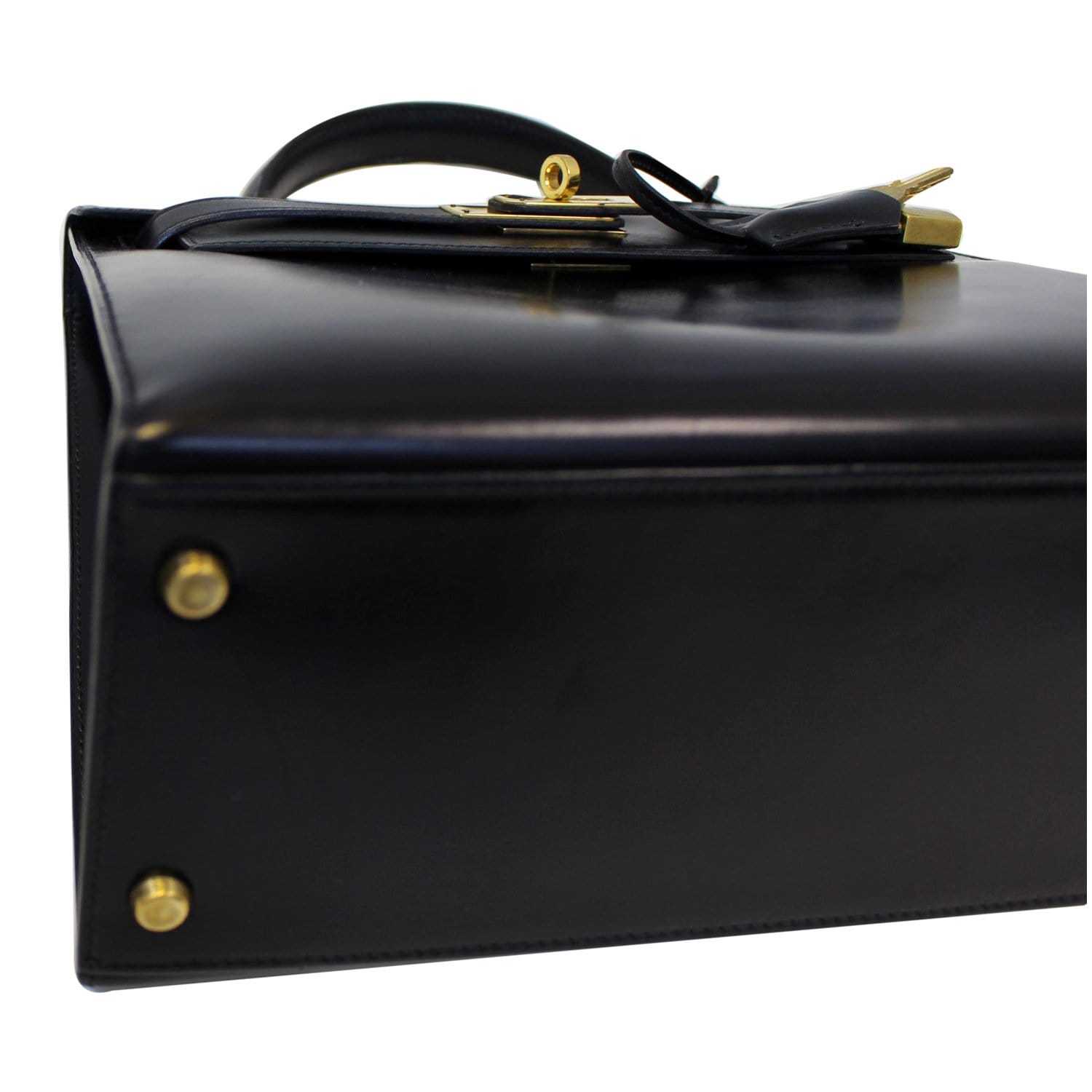 HERMES Kelly Sellier 28 Box Leather Satchel Bag Black