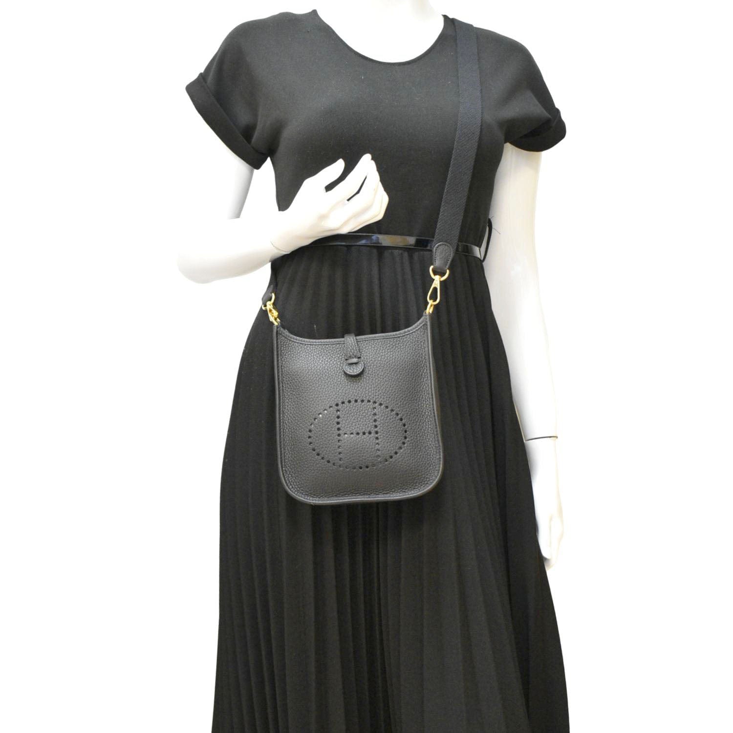 HERMES Evelyne TPM Clemence Leather Crossbody Bag Black