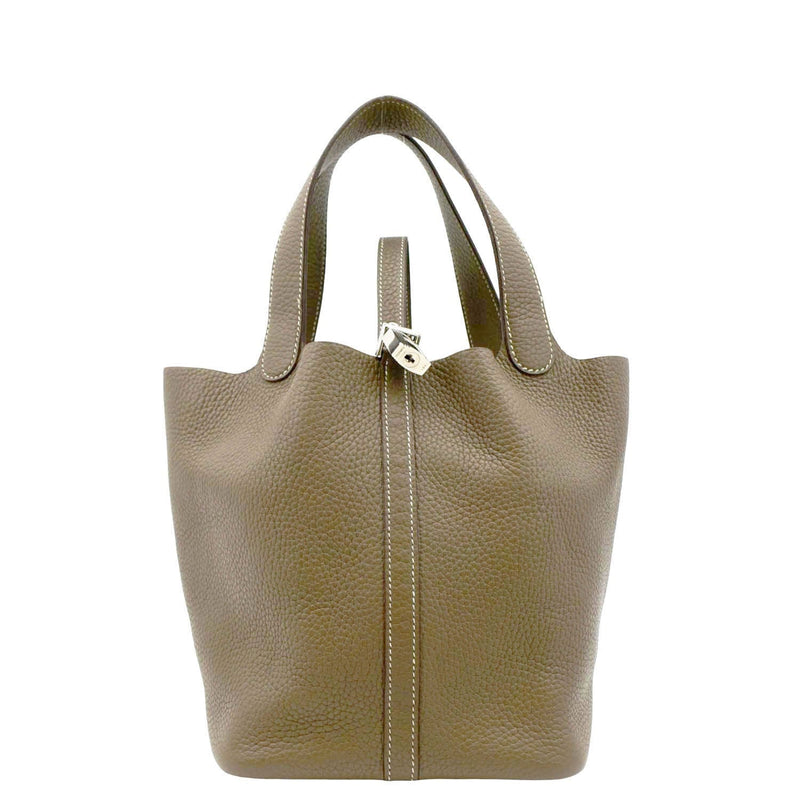 HERMES Picotin Lock 22 MM Taurillon Clemence Leather Hobo Bag Etoupe