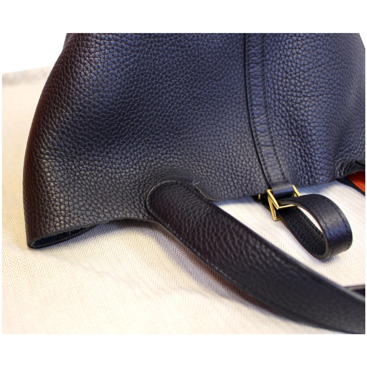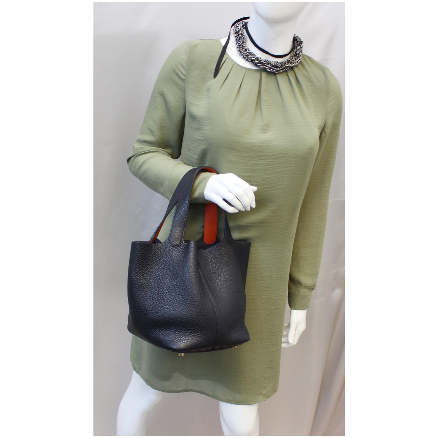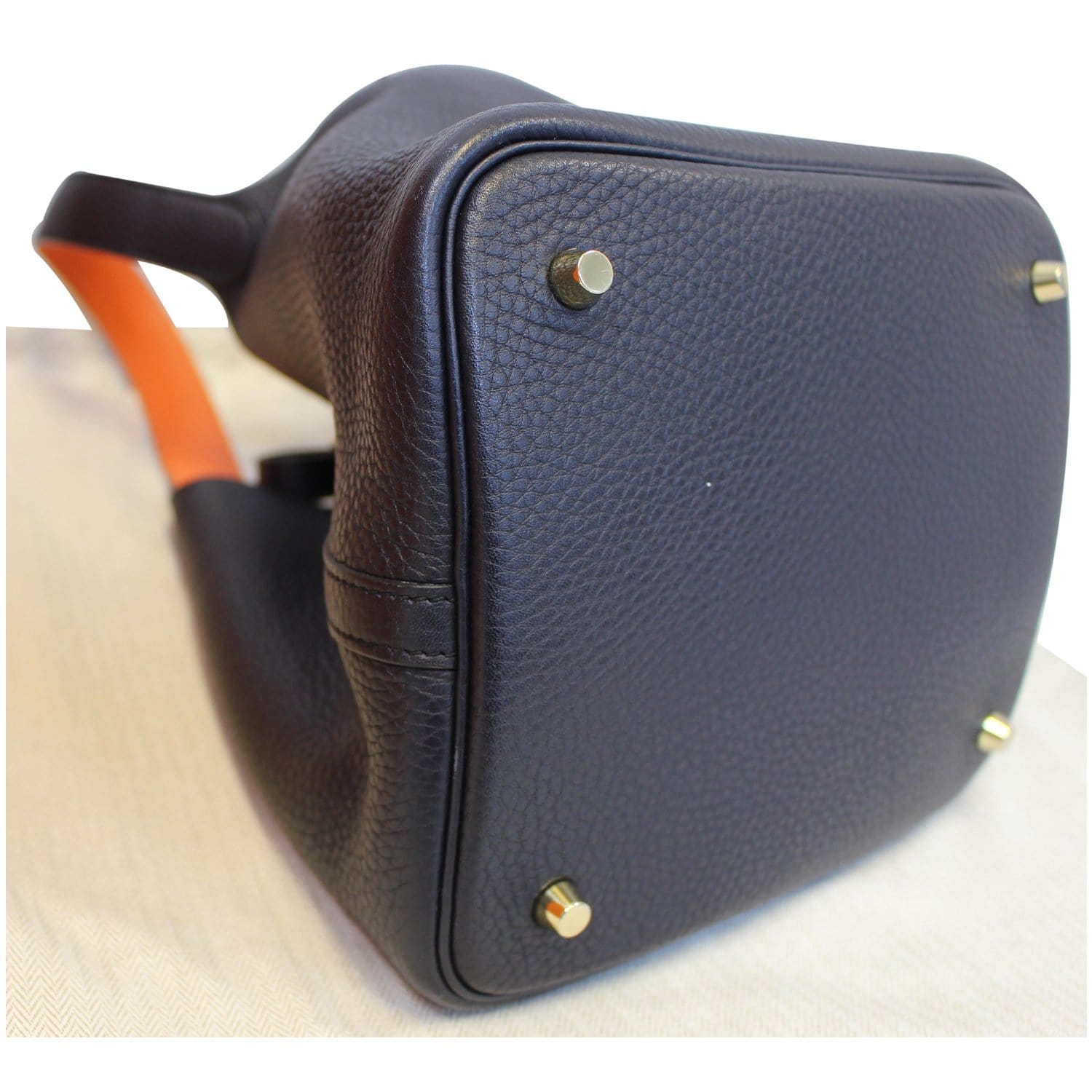 HERMES Picotin Lock 22 MM Orange Poppy Taurillon Clemence Leather Bag Black