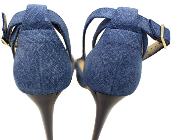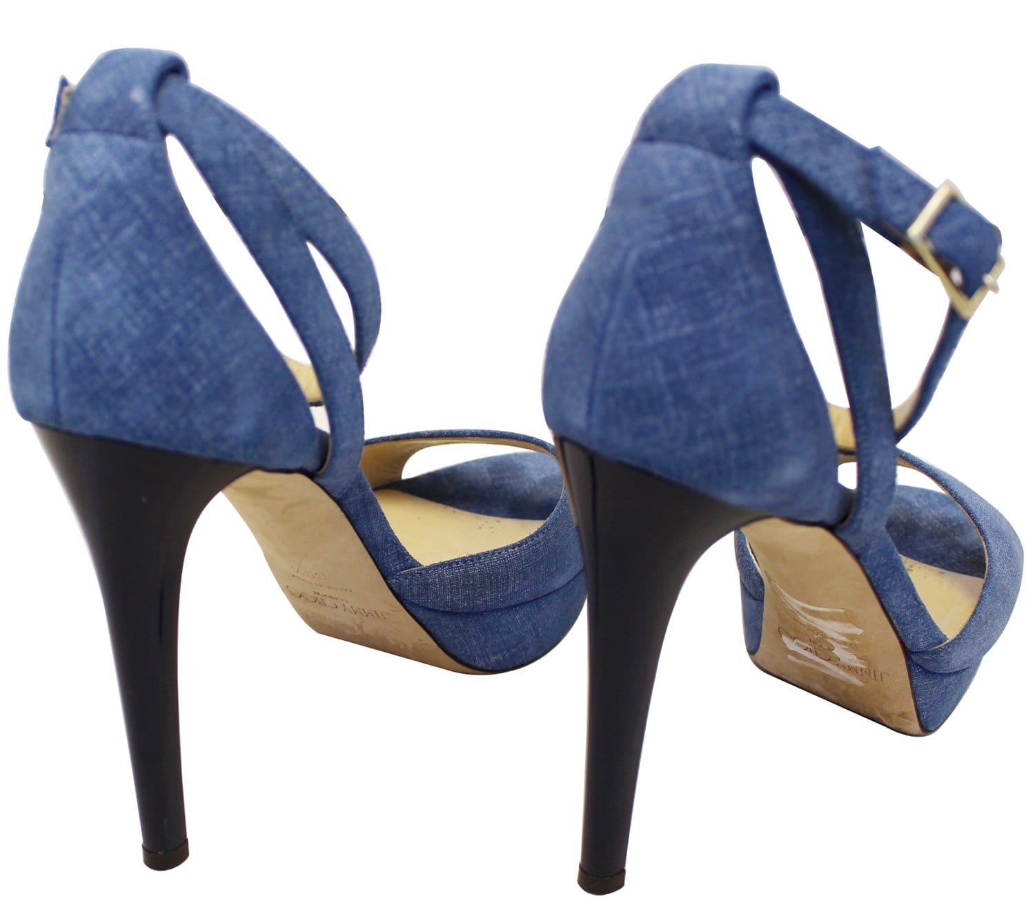 JIMMY CHOO Kayden Denim Platform Sandals Blue Size 39.1/2 - Sale