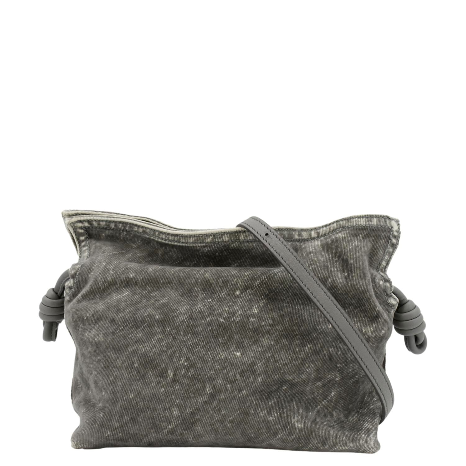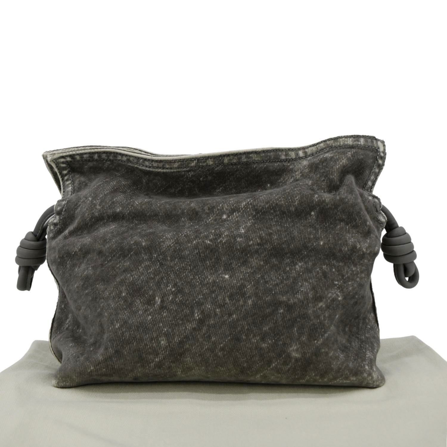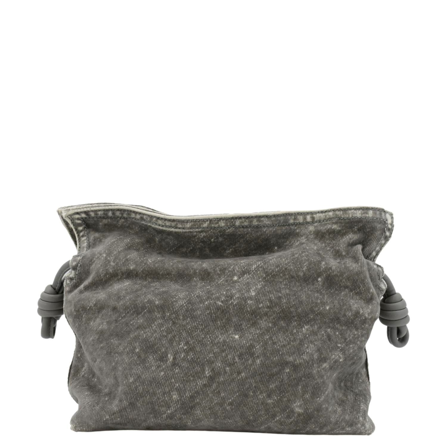 LOEWE Flamenco Medium Denim Flocked Clutch Bag Gray