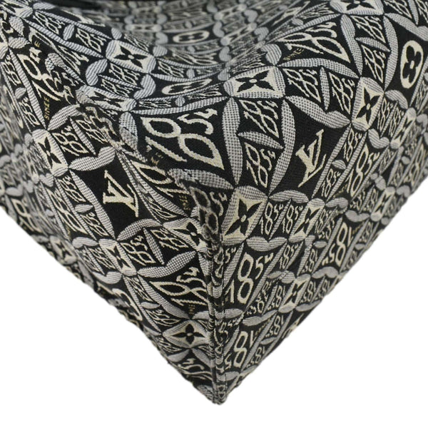 The Louis Vuitton Onthego GM 1854 Jacquard Tote Bag in grey features an intricate jacquard weave with vintage-inspired monogram patterns. Spacious and sophisticated, it’s perfect for work, travel, or everyday luxury.