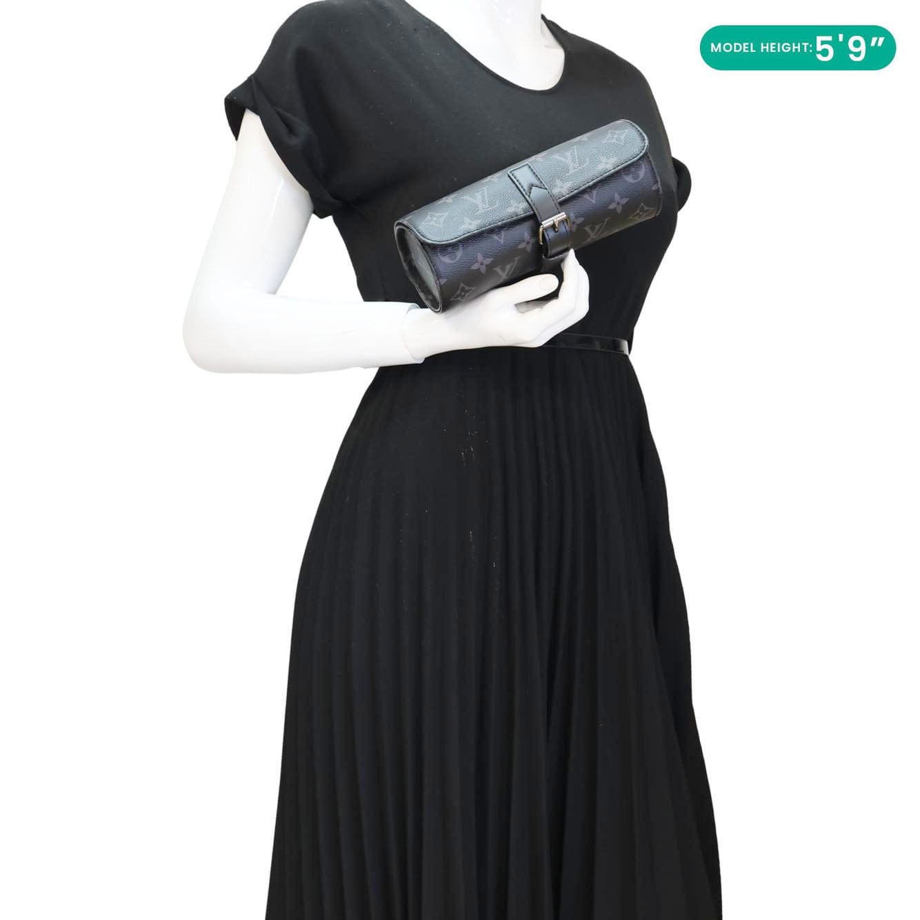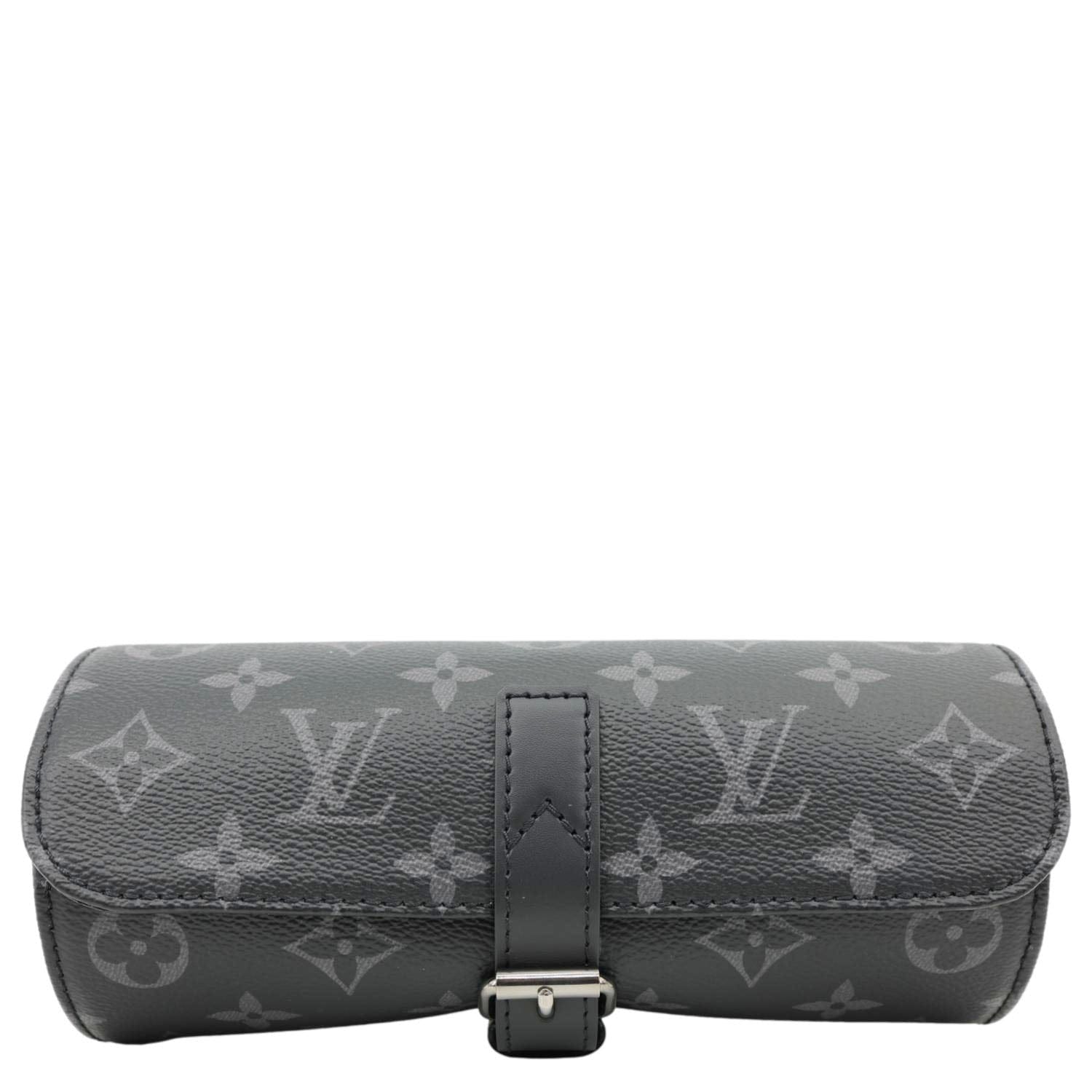 LOUIS VUITTON 3 Watch Case Monogram Eclipse Pouch Black