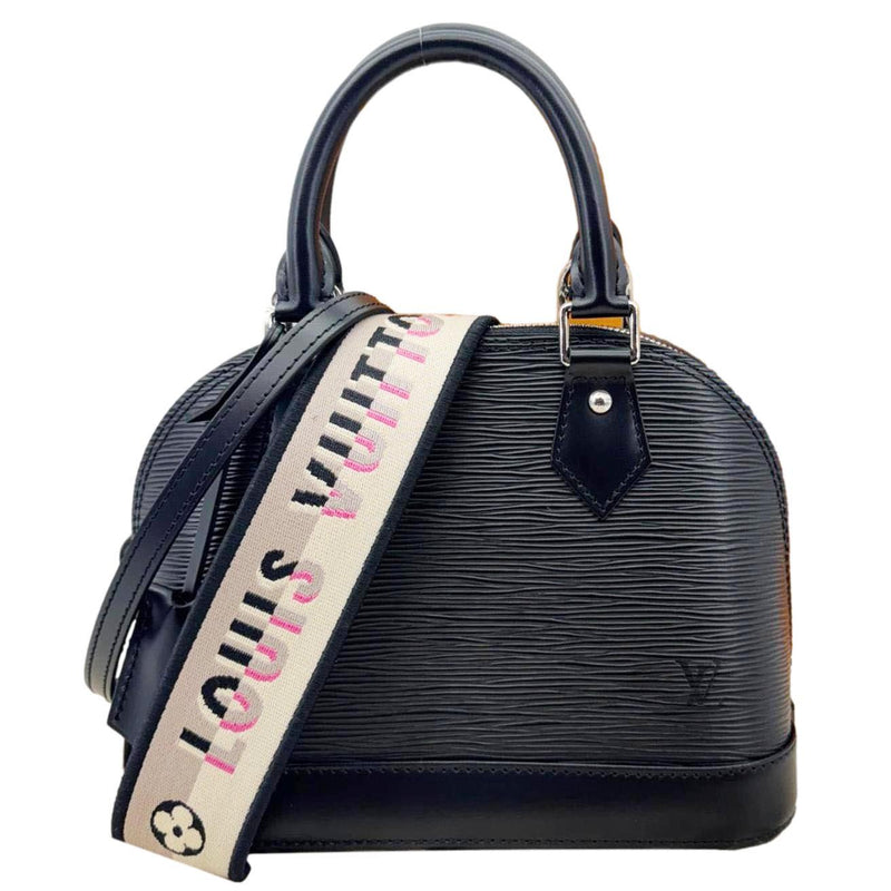 The LOUIS VUITTON Alma BB in Jacquard Epi Leather features a structured silhouette with a subtle woven texture and classic black tone. Compact and elegant, it includes a detachable strap for versatile crossbody or top-handle styling.
