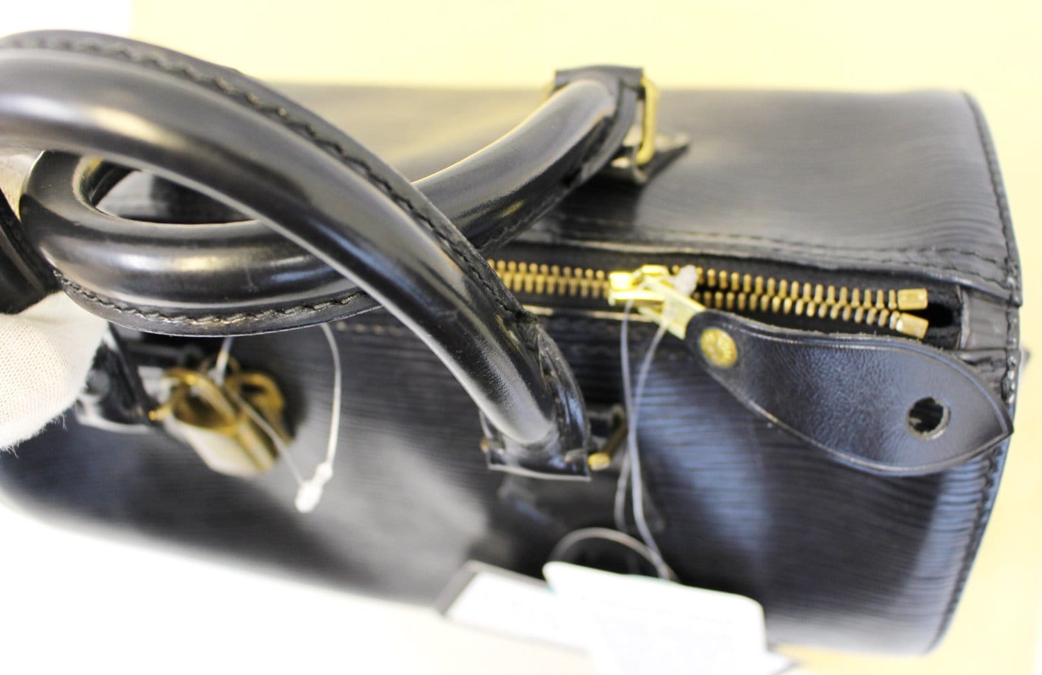 Louis Vuitton Black Fawn Epi Leather Speedy 25 Bag! This Louis Vuitton Epi Leather Speedy 25 Bag was styled after the iconic Keepall and has been a popular style ever since. It features beautiful black Epi leather with an ultra-spacious interior to hold all your daily essentials. Epi Speedy 25's are larger than Monogram Speedy 25's, measuring at about 28cm length-wise. Now discontinued in Epi leather, this is definitely a classic and luxurious piece of Louis Vuitton that will never go out of style!