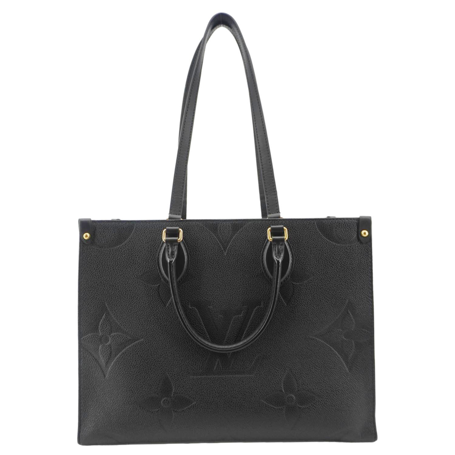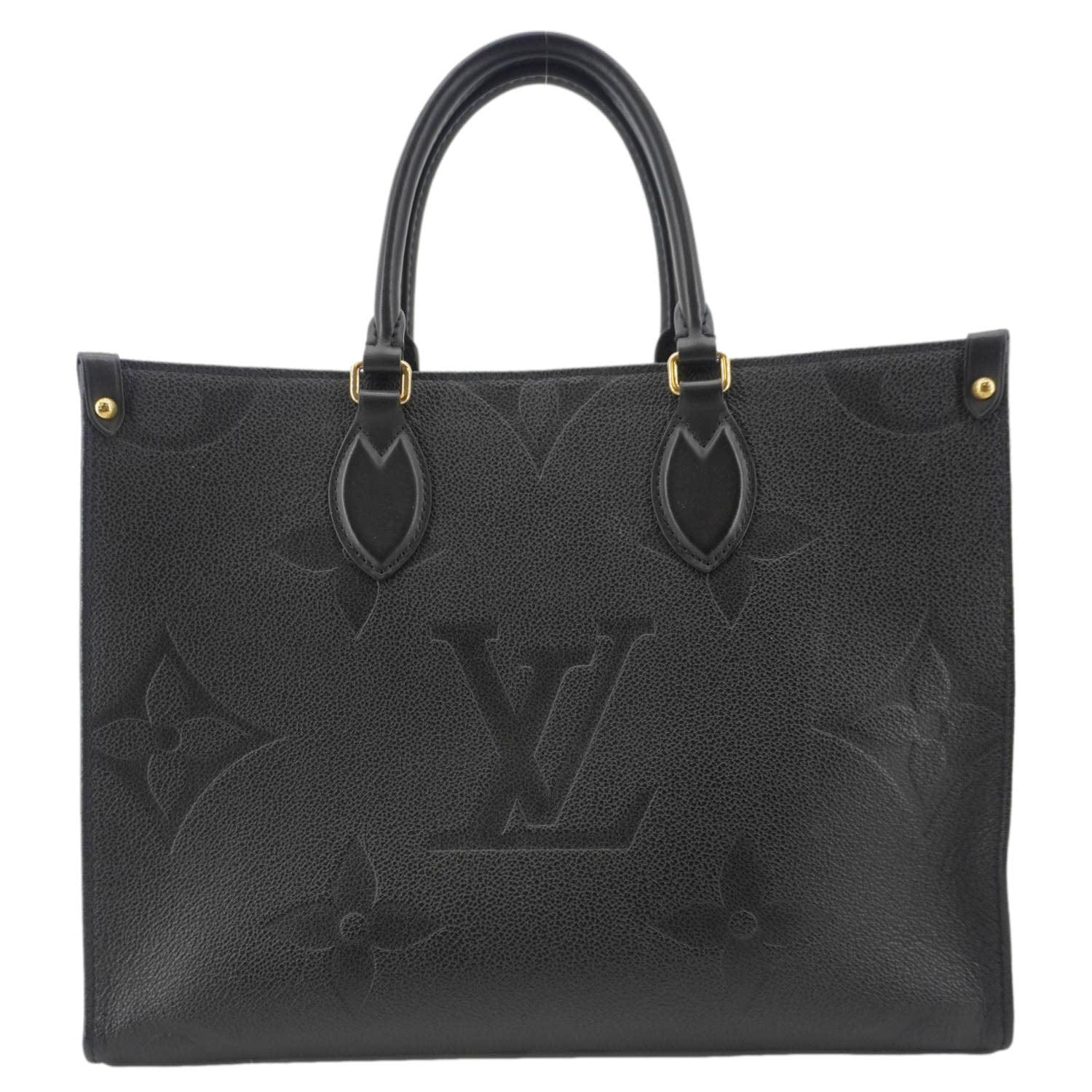 LOUIS VUITTON Onthego MM Giant Monogram Empreinte Leather Tote Bag Black