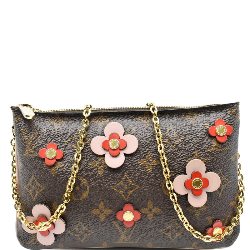 LOUIS VUITTON Blooming Flowers Pochette Monogram Canvas Chain Crossbody Bag Brown