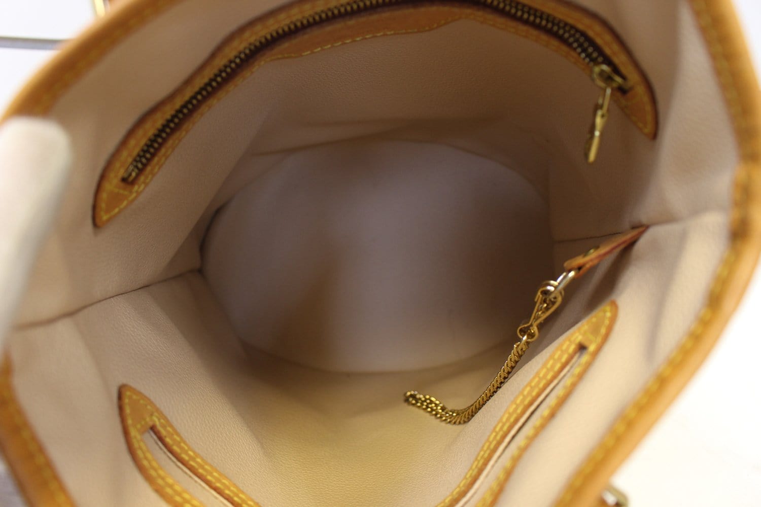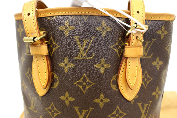 Louis Vuitton Monogram Canvas Petite Bucket Bag is a timeless piece that will never go out of style. It features a roomy interior with a zip pocket for securing essentials, and adjustable shoulder straps.