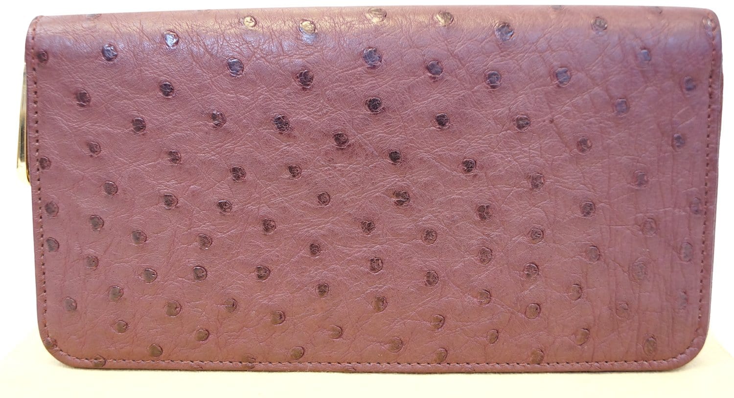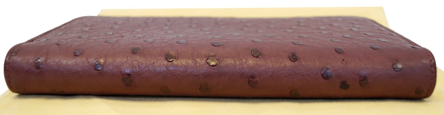 Burgundy Ostrich Leather Zippy Wallet - Sale