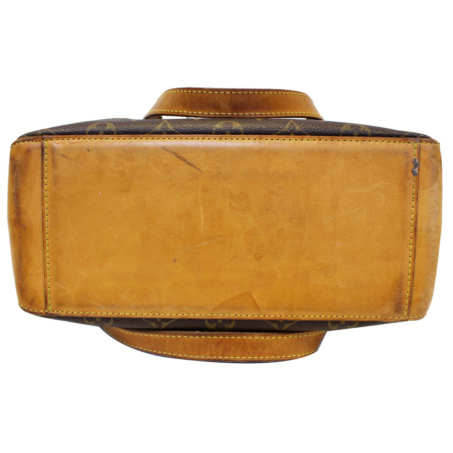 - Handle/Strap: Dirt and stain marks, dark color, visible signs of use.