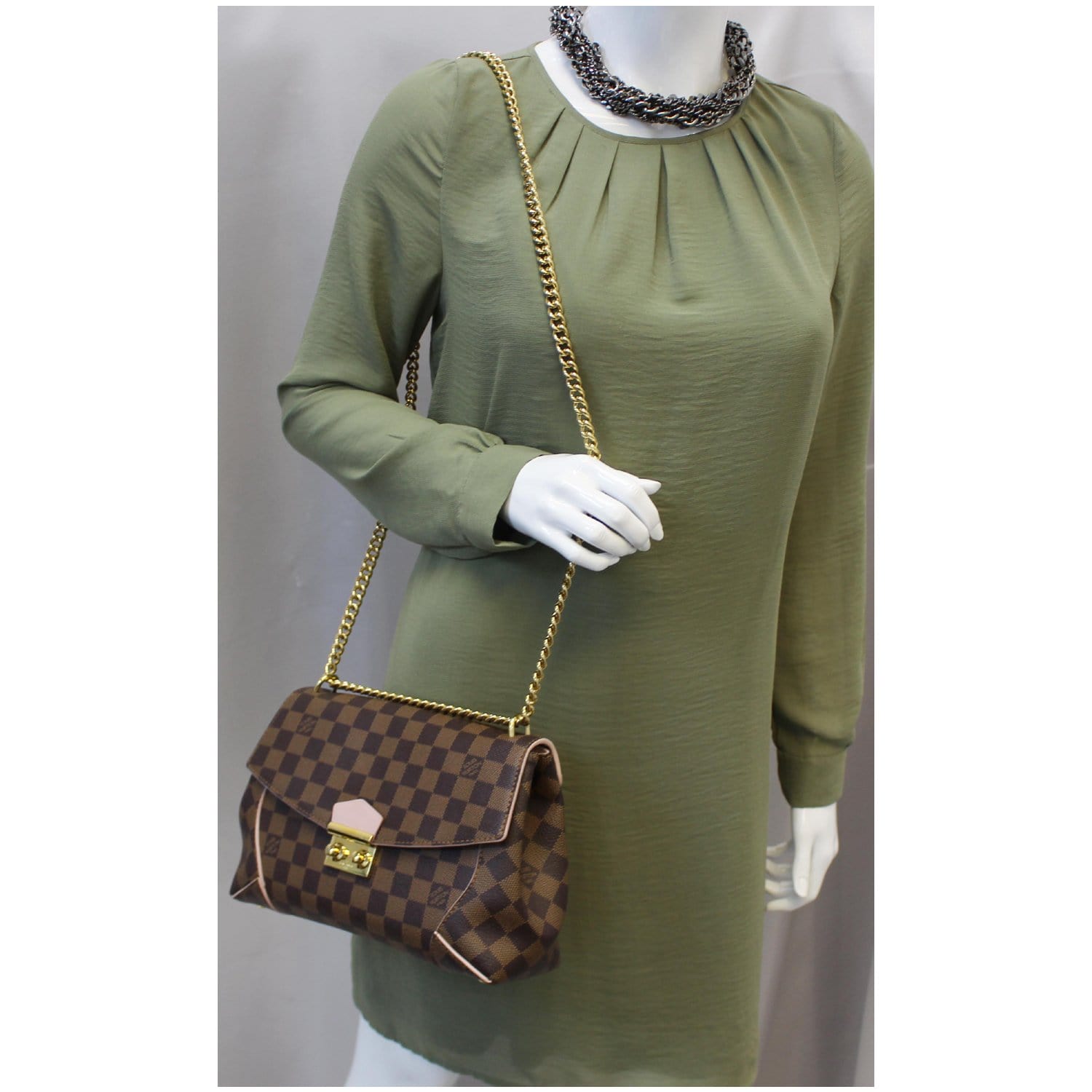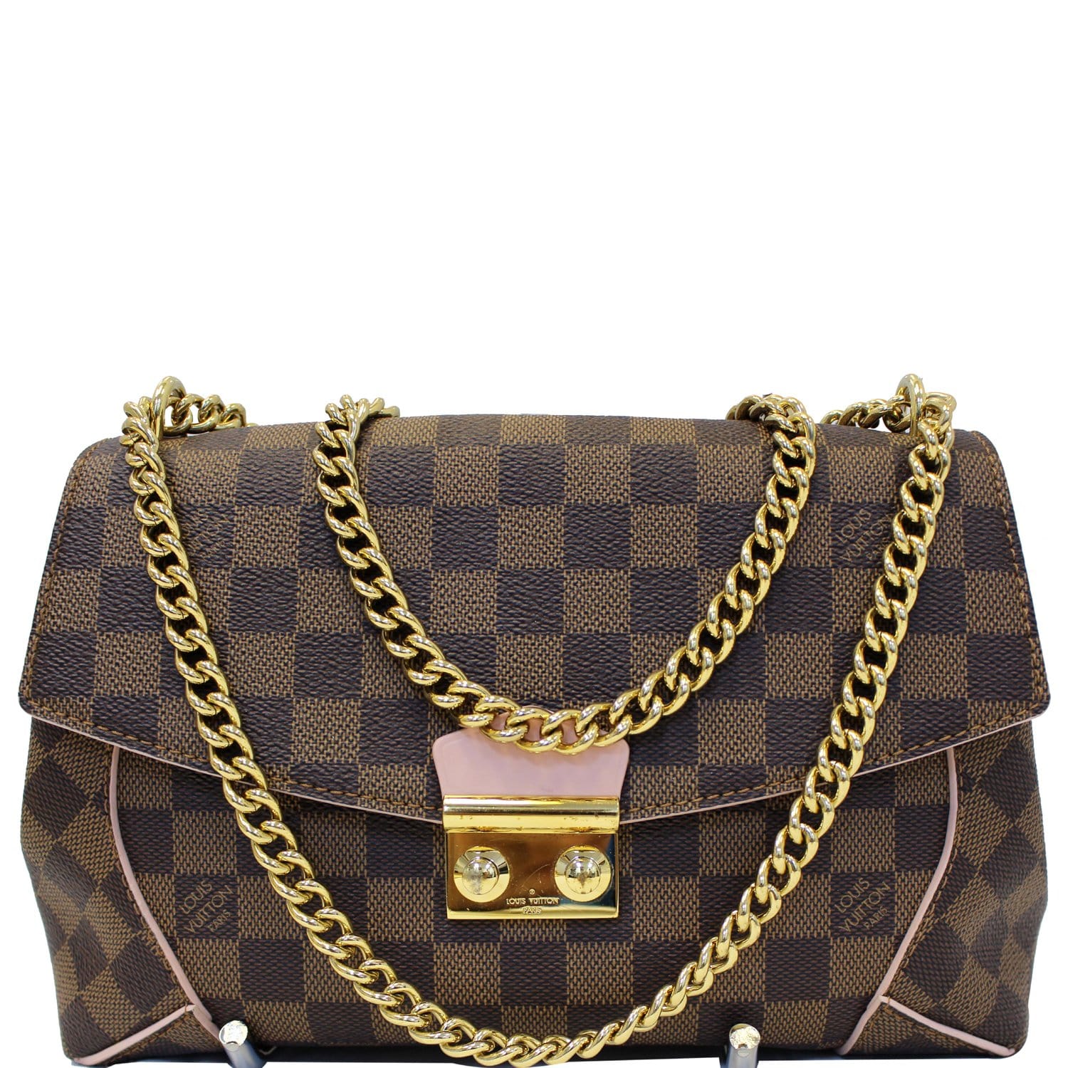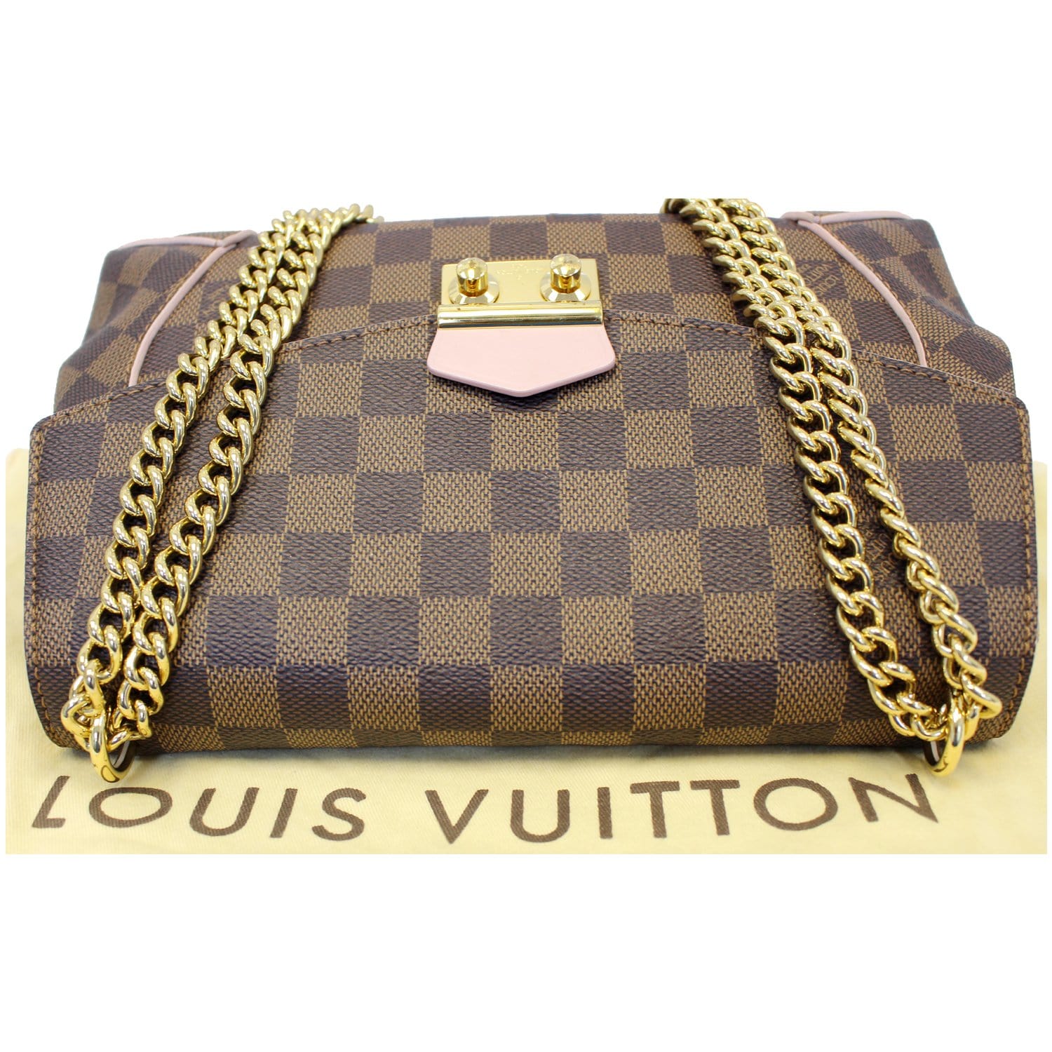 LOUIS VUITTON Caissa Chain Damier Ebene Clutch Shoulder Bag Rose Ballerine
